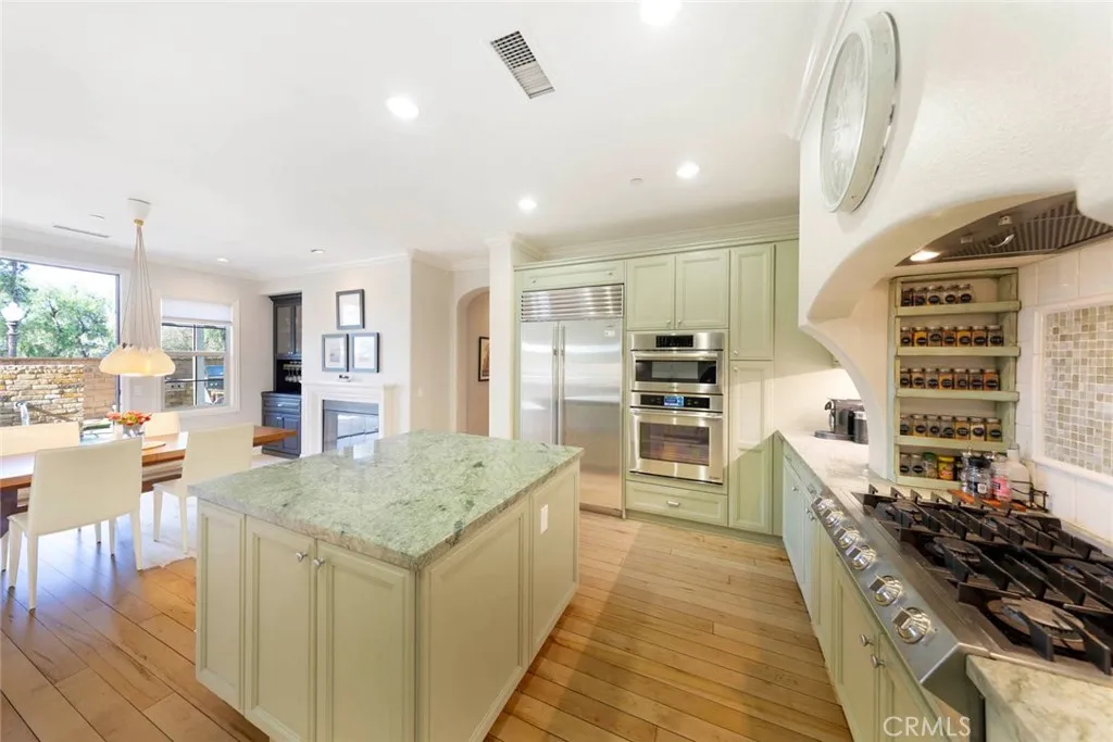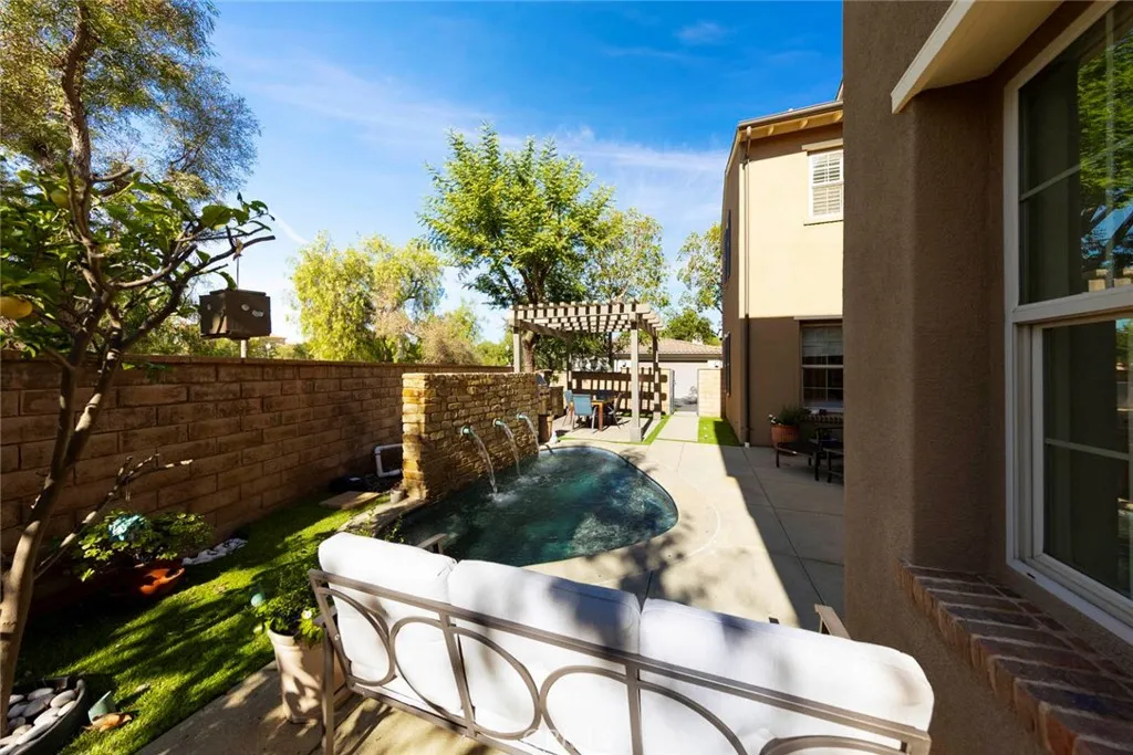 Discover refined living in this beautifully upgraded Irvine residence. Offering over 2,600 sq. ft. of living space, this 4-bedroom, 4.5-bath home features freshly painted interiors, resurfaced cabinetry, new carpet, and refinished hardwood floorscreating a warm, cohesive atmosphere from the moment you enter. The large, sunny side patio is an entertainers dream, complete with an in-ground hot tub with fountain, outdoor kitchen, and shaded dining area perfect for El fresco gatherings. Inside, the gourmet kitchen boasts a spacious center island, quartz countertops, custom cabinetry, walk-in pantry, added spice cabinet, custom dry bar, Sub-Zero refrigerator, Bosch double oven, and convenient direct access to the side patio and main living areas. A downstairs bedroom with en-suite bath, a guest powder room, and direct access to the oversized two-car garage with epoxy flooring and built-in storage enhancing the homes functionality. Upstairs, an open loft/office provides flexible living space, complemented by a well-appointed laundry room. The luxurious primary suite includes a private balcony overlooking Lomas Valley Park, white wainscoting, plantation shutters, and a unique His-and-Hers closet and bathroom layout featuring a soaking tub, Roman shower, and dual vanities. Two additional upstairs bedrooms each offer their own en-suite bathroom and walk-in closet. Additional upgrades include an epoxy-finished garage with ample built-in cabinetry for storage or parking. Located in a serene, park-like setting with plentiful guest parking, Lomas Park Community amenities include Clubhou