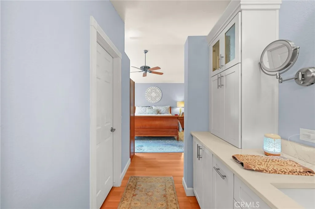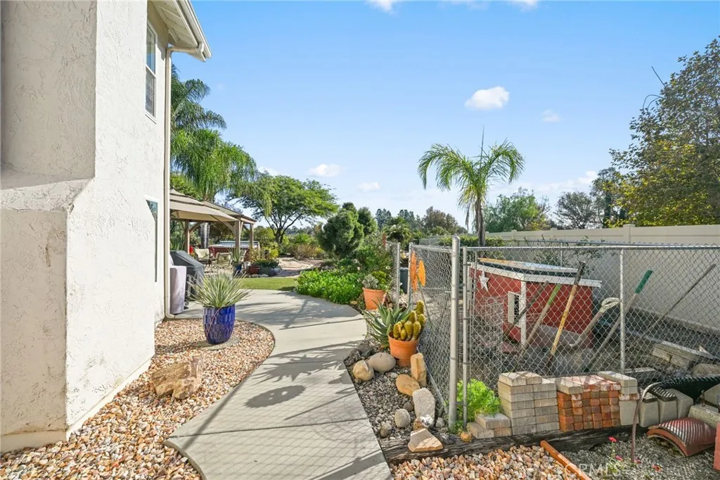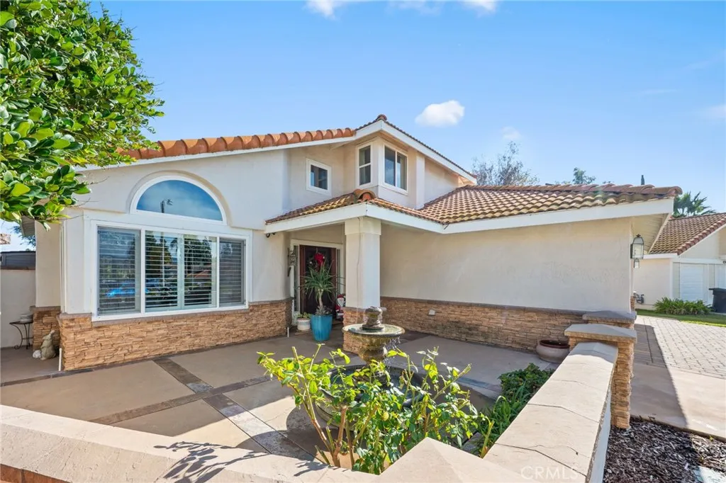 Welcome to this beautifully upgraded cul-de-sac home offering exceptional finishes and thoughtful details throughout. A gorgeous custom hardwood maple staircase with wrought-iron balusters elevates the entry, while dual-pane windows with custom window coveringsincluding shutters and blackout shadesprovide comfort and style. The gourmet kitchen features stunning natural stone quartzite countertops, a marble tile backsplash, a new stainless steel sink and microwave, custom pull-out drawers in the lower cabinets, soft-close doors, and a spacious walk-in pantry. The convenient downstairs bedroom is perfect for guests, and the downstairs bathroom is elegantly finished with a natural stone quartzite countertop. Durable LVP flooring flows throughout the first level. Upstairs, the primary bathroom offers new cabinetry, a sleek quartz countertop, new double sinks & light fixtures and a tiled shower. The Jack & Jill bathroom features a vanity with a marble countertop, tile floor and barn door. The upstairs living areas are complemented by uniform 3M laminate flooring. Stepping outside, the inviting front courtyard features a peaceful fountain and wrought-iron gate, creating a charming outdoor retreat. The oversized backyard is an entertainers dream, showcasing two Yardistry wooden gazebos, a custom stone propane CalFlame fireplace, and a 2017 CalSpa. Additional outdoor highlights include vinyl privacy fencing, a dedicated dog run with a custom dog condo, and four large raised garden beds for gardening enthusiasts. Energy efficiency is enhanced by owned solar, offering long-term utili