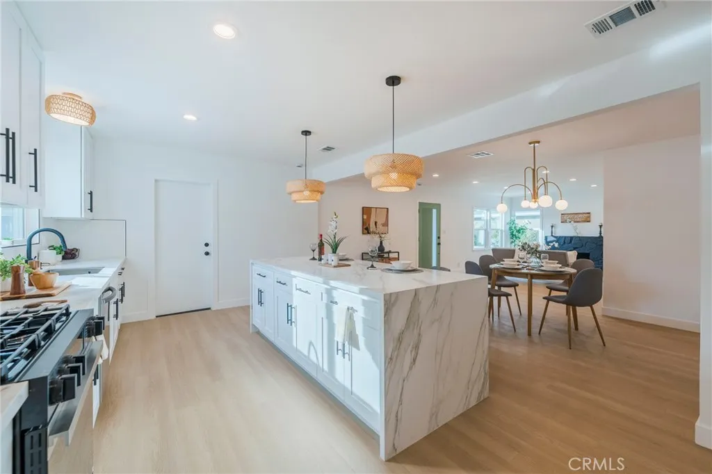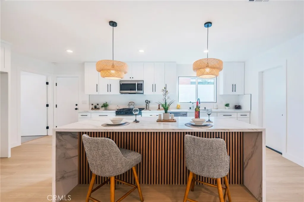 Welcome to this beautifully renovated single-story home, where modern design meets luxurious comfort in the heart of Torrance's coveted Seaside neighborhood. Perfectly situated less than 3 miles from Torrance's pristine beaches, you're also just moments from highly-regarded Torrance Unified schools, the Sea-Aire golf course, and a block from Seaside Heroes Park. This stunning property boasts a spacious open floor plan, three generously sized bedrooms, and premium features that elevate your living experience. Two full bathrooms have been tastefully renovated with modern mid-century touches. Step inside through a beautiful custom beach teal colored front door and be greeted by the inviting ambiance, enhanced by recessed lighting, new white interior paint, and premium laminate wood flooring throughout the home. The heart of this home is the large chef-inspired kitchen, complete with gleaming quartz countertops, all-new stainless steel appliances, shaker-style slow-close cabinetry, and a custom island with a waterfall finish perfect for both cooking and entertaining. Cozy family room with a painted wood-burning fireplace to rest and relax on evenings. All new windows, with an added luxury of an upgraded HVAC system. Enjoy the spacious backyard to host all of your special gatherings with a new irrigated water system, new grass, and a separate decomposed granite area to enjoy with family and friends over a nice fire pit. With its thoughtful design, premium finishes, and a fantastic layout, this home is the perfect blend of modern living and comfort. Great location with the award-