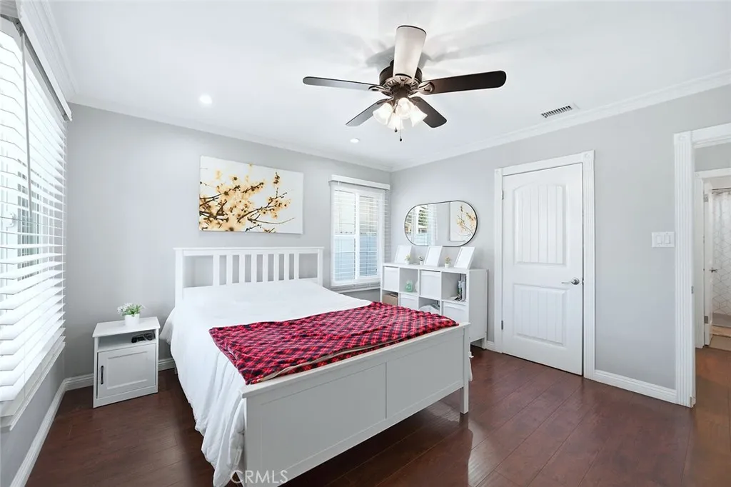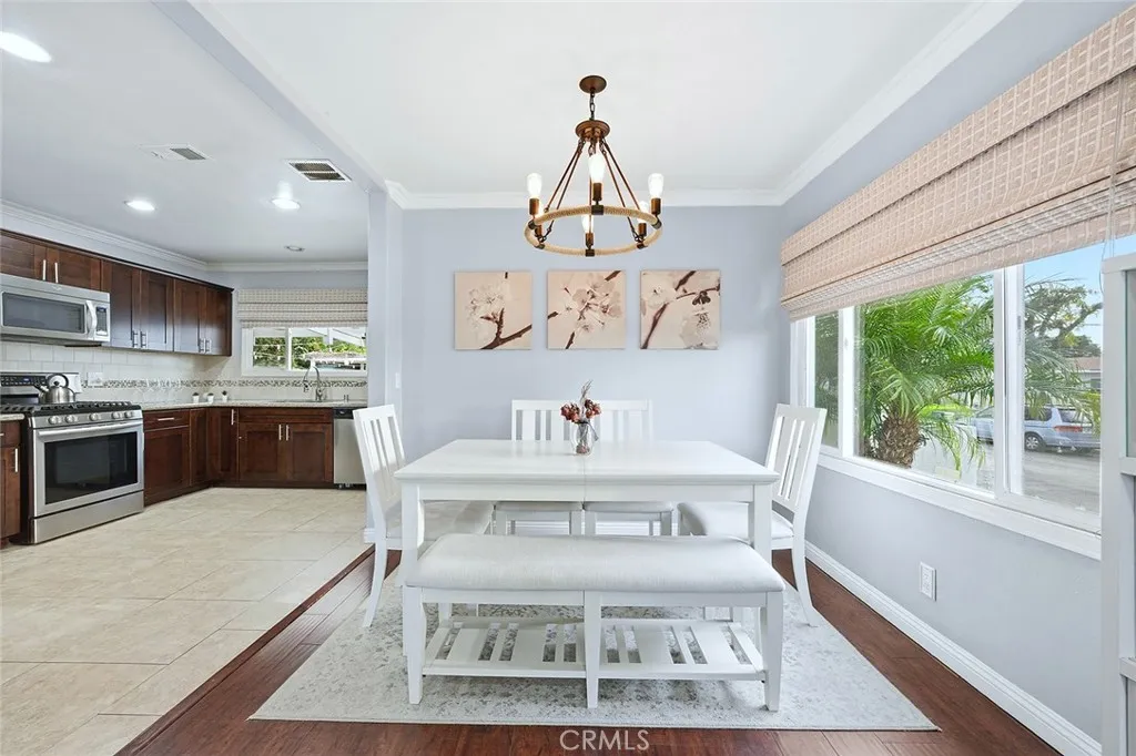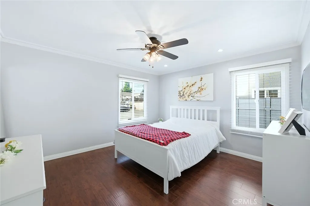 Welcome to 8606 Bright Ave! A beautifully updated 3 Bedroom, 1 Bathroom home perfectly situated on a desirable corner lot at the end of a peaceful cul-de-sac in Whittier! This turnkey home features a spacious open layout that maximizes every inch of its footprint, complemented by modern upgrades throughout, including laminate wood flooring, recessed lighting, newer windows, crown molding, and Central AC/heat. The updated kitchen offers granite countertops, rich dark wood cabinetry, and a stylish tile backsplash. The remodeled bathroom features a contemporary tile shower and quartz countertop vanity. A full laundry room adds maximum convenience. The backyard is a fantastic highlight and a fantastic size measuring 6,021 Sqft, featuring an attached covered patio, a detached covered gazebo ideal for outdoor dining, BBQ or lounging, and a lower gated section perfect for a childrens play area or pet space. Additional features include a gated storage area with a newer cement slab ready for a shed, lush green landscaping, and a 2-car garage with an additional storage room attached. This home truly has it all! Located in a quiet, family friendly neighborhood with excellent schools, and just minutes from the wonderful shopping and dining of Uptown Whittier and The Quad! Take advantage of this opportunity and make this amazing home yours today!