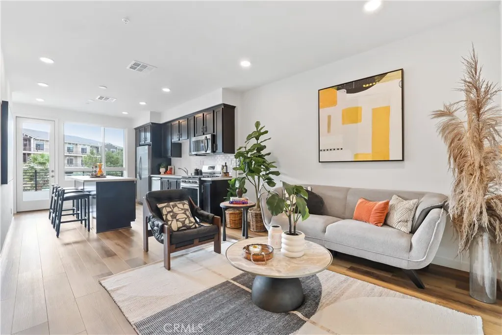 Fresh paint, new flooring and all new everything await you at this NEW TOWNHOME in a gated community by Bonanni Development in Stanton, close to Rodeo39 and the 22 Freeway. Three bedrooms and three baths with a bedroom and private bathroom off of the spacious great room. This plan 2A is light and bright RARE END LOCATION with white cabinets and a very private location. The great room design flows into the kitchen with a generous island and large, private deck. Plus stainless steel dishwasher and gas range. Upstairs are two en-suite bedrooms with walk-in-closets, direct access bathrooms and a convenient laundry area. Built with state of the art technology, high speed wiring throughout, plus new appliances, cabinets and flooring. SOLAR PANELS INCLUDED IN PRICE! This gated community will have three unique parks for homeowners to enjoy including a private dog park! Photos are of the models.