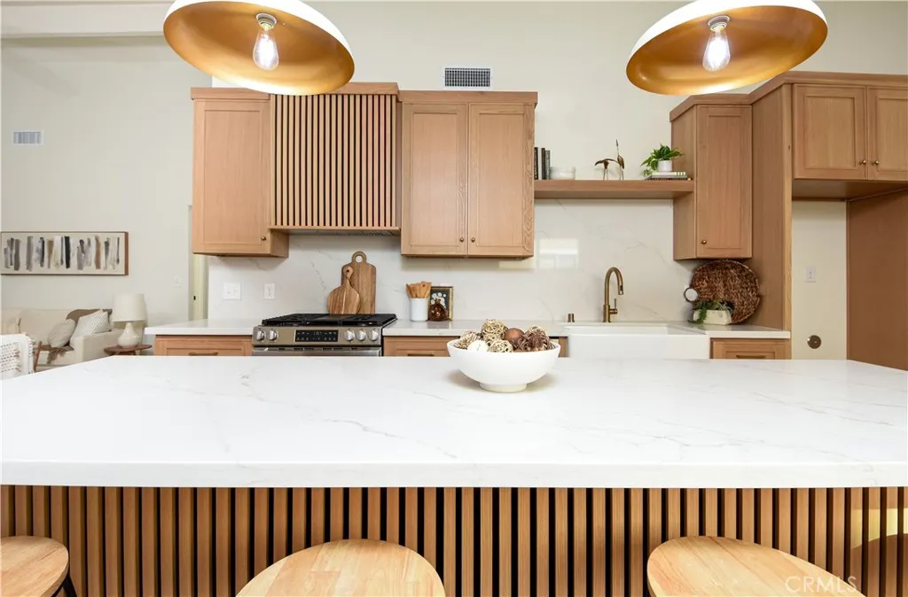 Beautifully remodeled inside and out! This gorgeous property features a large, primary bathroom with a zero entry shower and a large free-standing bath tub. The primary bathroom also boasts a dual sink, white oak vanity with new plumbing and lighting fixtures. The primary suite comes complete with a massive walk in closet and a sliding glass door to the backyard! The kitchen has been fully remodeled with white oak cabinetry, large center island with waterfall quartz countertops, apron sink, custom hood vent and new appliances. The guest bathroom has also been fully remodeled with contemporary tile work, new bathtub, a white oak double vanity and new plumbing and light fixtures. Brand new flooring, interior doors and baseboards throughout the home and a freshly painted interior makes this home feel brand new! The exterior landscape has been fully refreshed with new hardscape in the front yard and drought tolerant plants throughout the front and backyard. New dripline and sprinkler system has been installed. The large pool sized backyard has a view with no rear neighbors. Family friendly culdesac location which is within walking distance to Pavilion park, Philip Reilly Elementary school or the Oso Creek Trail. This home has been upgraded with a brand new HVAC system, new tankless water heater, and new electrical. You won't find a better remodeled home in Mission Viejo. Come tour this property today!