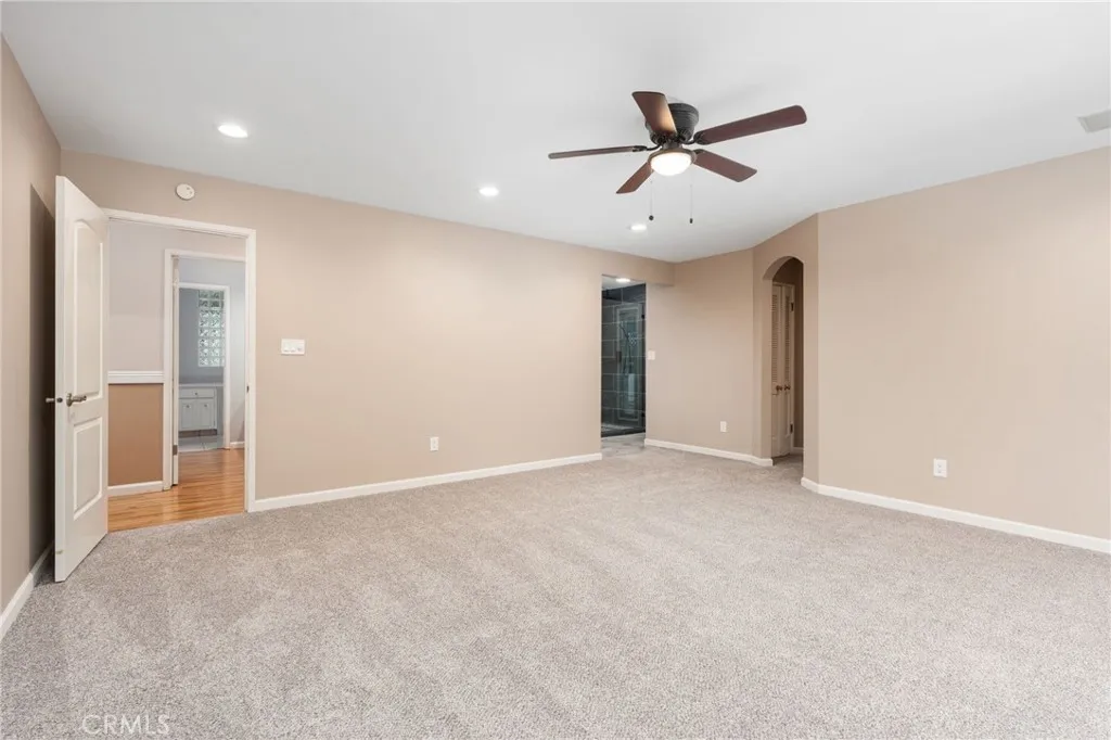Step into the Harris Acres lifestyle: wide tree lined streets where kids ride bikes and play in the front yards together. Enter through double doors into a grand foyer with curved walls that set the stage for the home beyond. Set on a sprawling 16,000+ sq ft lot, this Mid Century California Ranch offers 4 bedrooms (plus bonus room) is built for gathering, relaxing, and entertaining. Inside are nearly 3,300 sq ft of well planned space, including formal and casual living areas, a fireplace, and a newly refreshed primary suite with a modern walk in spa shower and oversized closet. The kitchen is the true hub, offering a 6 burner commercial Thermador range, Corian counters, custom cabinetry, a wet bar, breakfast bar seating, and a side by side refrigerator/freezer set that stays. A split layout places three bedrooms on one side and the fourth bedroom plus bonus room/office on the other; ideal for guests, multigenerational living, or work from home needs. Two sliding doors open to a backyard made for summer: a spacious patio with prep counters and sink, a large gunite pool with diving board, landscaped grounds, a dog run, and an extended driveway leading to RV/boat parking behind double gates. Additional highlights include dual pane windows, plantation shutters, indoor laundry with deep sink, a whole house fan, newer HVAC, a composition roof, and owned solar. Mature avocado, grapefruit, lemon and oranges trees line the property, creating your own sun soaked California orchard right at home. Here, the Harris Acres lifestyle and location is unbeatable: steps from a scenic run down