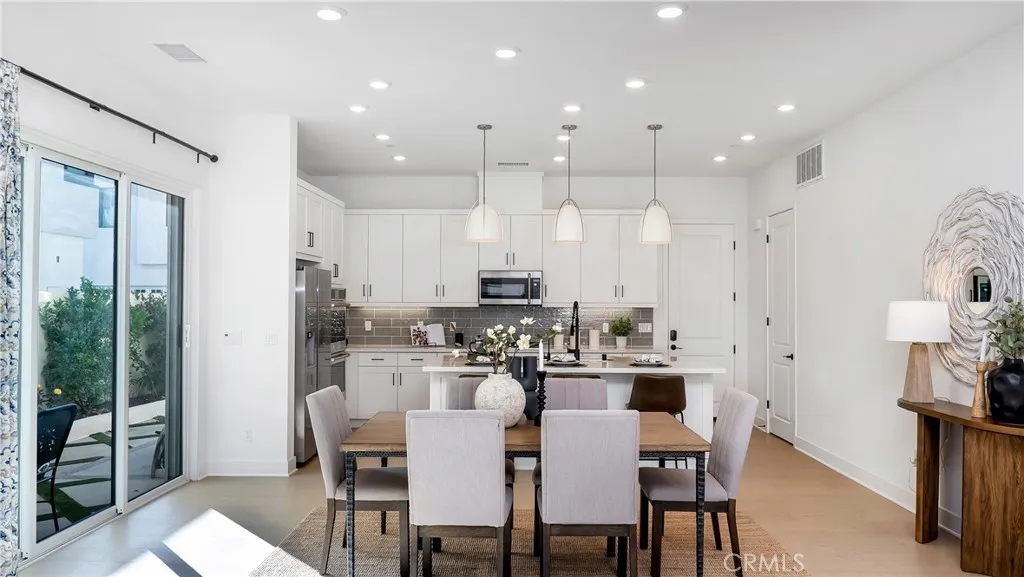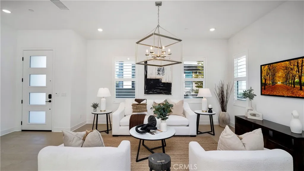 Welcome to 138 Yugen, a beautifully upgraded DETACHED home with nearly 3,000 sqft of thoughtfully designed living space tucked within the vibrant Solis Park enclave of the coveted Great Park Neighborhood in Irvine. From the moment you enter, youre greeted by natural light that pours through thoughtfully placed windows, illuminating rich hardwood floors and an open-concept layout designed for modern living. The expansive great room offers an inviting living and dining space that flows seamlessly into a chef-inspired kitchen - perfect for both everyday living and entertaining. At the heart of the kitchen is a large center island with counter seating, surrounded by sleek quartz countertops, a designer tiled backsplash, soft-close white cabinetry, and premium Caf Series stainless steel appliances. A walk-in pantry adds both function and flair, making this kitchen as practical as it is beautiful. Upstairs, the spacious primary suite serves as a private retreat with a large walk-in closet and a spa-like ensuite bath featuring a tiled walk-in shower, a deep soaking tub, and dual vanities. Three additional bedrooms are well-appointed, ideal for family or guests, and the third-floor bonus room - with its own full bath and access to a private rooftop terraceoffers mountain views and endless possibilities. Whether you envision a media room, home gym, guest suite, or office, this flexible space is designed to adapt to your lifestyle. Additional highlights include recessed lighting throughout, custom plantation shutters, a professionally landscaped yard perfect for outdoor gatherings, a