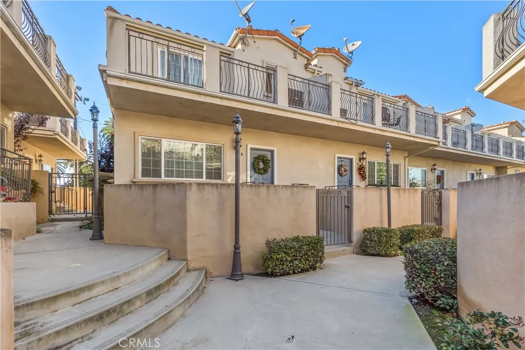 Impeccable Mediterranean-style townhome in Historic Old Town Torrance. This stunning 3-bedroom, 2.5-bath END UNIT offers a rare combination of privacy, abundant natural light, and a TURN-KEY presentation. With only one shared wall, end-unit windows allow for a bright interior, making this home a stand out within the 20 unit complex. The main floor features a living room layout focused on comfort and style, with soaring ceilings, crown molding, recessed lighting, beautiful hardwood floors, and a gas and wood-burning FIREPLACE. The kitchen, with stainless steel appliances and abundant cabinetry, flows effortlessly into the dining area and opens to a private balcony. Upstairs, all three bedrooms feature new plush carpeting and large windows, including a private balcony with open views and cool coastal breezes. The spacious primary suite offers a separate shower, soaking tub, and generous walk-in closet. EXCEPTIONAL highlights include an oversized 3+CAR tandem garage with ADDITIONAL enclosed storage, plus standing washer and dryer, making this home a rare find in Old Town Torrance. The property offers convenient access to nearby shops, restaurants, parks, major transportation routes and is located within the Torrance Unified School District. Agents: End-unit inventory with this layout, turn-key presentation and garage capacity makes it a standout.