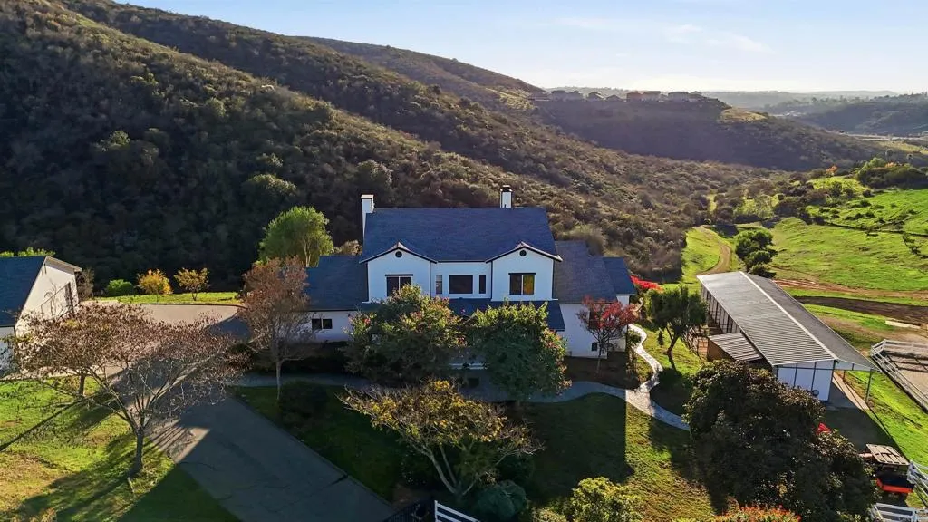 Robinhood Ranch: Premier 5-Acre Gated Equestrian Estate w/ Ocean Vistas & Owned Solar Discover "Robinhood Ranch," a private 5-acre sanctuary. This premier gated estate pairs equestrian facilities with sweeping panoramic ocean views. Backing to conservation land, it ensures maximum peace, privacy, and direct trail access. Enjoy coastal breezes and breathtaking sunset views from the expansive wrap-around deck. The Residence: This beautifully designed 5-bed, 4-bath home features high ceilings, views from every room, and a 2-car attached garage. The main-level offers a primary suite with a bonus room and an ensuite bath. The chefs kitchen boasts granite countertops, double oven, walk-in pantry, and a breakfast nook. A spacious dining room, living room, and main-floor laundry complete the first level. Upstairs includes 3 generous bedrooms, 2 baths (Jack & Jill/Ensuite), and a massive entertainment/bonus room with secondary laundry. Luxury & Flexibility: The property includes a versatile 36' x 36' detached building with an open floor plan, bath, hot water, and a dedicated HVAC. It's ideal for a shop, maker space or ADU (buyer to verify all permits). Both the main residence and the detached building feature new roofs and solar (8.6kW, NEM1). Enjoy quick access to a full spectrum of shopping, dining, and highways all within 5 miles. Equestrian Amenities & Unmatched Flexibility: Built for the discerning horse owner, the setup features a 4-stall barn with lighting, cross-ties, tack room, hay storage, double wash racks, and a separate feed room. Facilities include a professional 155'