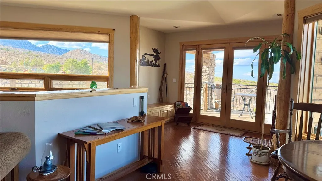 Custom built gorgeous property tucked in the mountainous valley of Pinon Hills, this custom Craftsman home sits quietly on three private acres, surrounded by sweeping 360-degree mountain views. At an elevation of 4,500 feet, the air feels clearer, the skies look bigger, and the horizons stretch nearly 80 miles to the north, east, and west. To the south, the rugged peaks of the Angeles National Forest rise just five miles froman ever-present backdrop of wilderness and beauty. Built by a professional craftsman, the 2,200-square-foot home was designed with intention and precision. Every system, every feature, and every finish was chosen to make the home efficient, comfortable, and exceptionally functional. Inside, youll find two bedrooms, an office/den, and two and a half baths, all supported by amenities such as a central vacuum system, an on-demand water heater, whole-house water filtration, and a water softener. The home offers multiple options for heating and coolingDual-Pack HVAC, a wood-burning stove, radiant floor and wall heat powered by a high-efficiency boiler, and a whole-house fanensuring year-round comfort no matter the season. Attached to the main residence is a garage unlike any other: a fully insulated, finished, and climate-ready 1,700-square-foot structure built for serious work or serious play. With space for six vehicles, three insulated 12' x 12' doors, an air compressor plumbed to multiple outlets, abundant 110V and 220V power, a service sink, a refrigerated drinking fountain, and even its own laundry and pantry, its a dream space for car enthusiasts, con