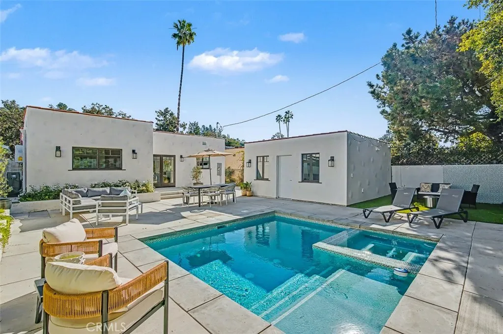 A breathtaking, fully reimagined 1930s Spanish Revival blending historic charm with modern luxury. Located on one of Glendales most desirable tree-lined streets, 1317 Ethel Street has undergone an extensive, top-to-bottom renovation with every detail thoughtfully curated. This 3-bedroom home features three ensuite bedrooms, an elegant powder room, and an open-concept layout filled with natural light. The renovation includes: new Santa Barbarastyle smooth-coat stucco, new wide-plank engineered hardwood flooring, custom wood interior doors, custom millwork, designer lighting fixtures, recessed LED lighting throughout, dual-pane energy-efficient windows, new insulation, energy-efficient HVAC with new ducting, tankless water heater, Nest smart thermostat, smart exterior switches, and a pre-wired EV charger line. The chef-inspired kitchen showcases a full Miele appliance suite, custom stone waterfall counters, premium cabinetry, LED mood lighting, and open shelving. All bathrooms feature hand-selected tilework, floating vanities, brushed brass fixtures, oversized showers with niches, and spa-caliber finishes. Each bedroom includes custom-built closets with organizers. The homes historic character has been carefully preserved with the restored original front door, original fireplace with a custom updated mantel, preserved architectural arches, and original Spanish roof tiles integrated into the new roof. The backyard was completely re-envisioned with a reconfigured pool for maximum usable space, all-new hardscape, outdoor dining and lounge areas, privacy hedges, and a resurfaced