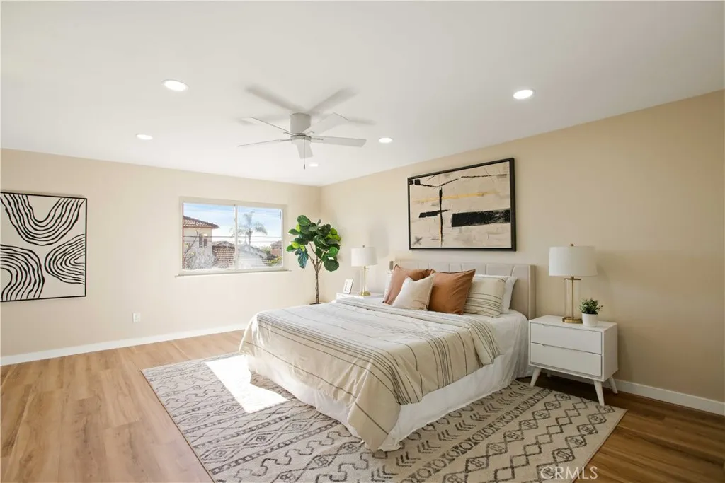 Welcome to your coastal getaway just 3 miles from the beach, tucked comfortably by a cul-de-sac. This extensively remodeled 4 bedroom, 3 bath home features an easy, open layout thats perfect for everyday living and entertaining. The beautifully updated kitchen takes center stage with the large island, ideal for cooking, hosting, or simply gathering with friends and family. From the kitchen, the space flows right into the bright and inviting living area, complete with a cozy fireplace and a large slider that opens directly to the backyard creating a seamless indoor-outdoor experience. The home includes new wood flooring, recessed lighting, spacious bedrooms, and remodeled bathrooms, with a convenient primary bedroom on the main floor, ideal for multigenerational living. Upstairs, youll find a generous primary suite that feels like its own private retreat. Located in the award winning Huntington Beach School District and close to Downtown Huntington Beach, restaurants, shopping, and major freeways. This home offers the perfect blend of comfort, style, and prime coastal living.