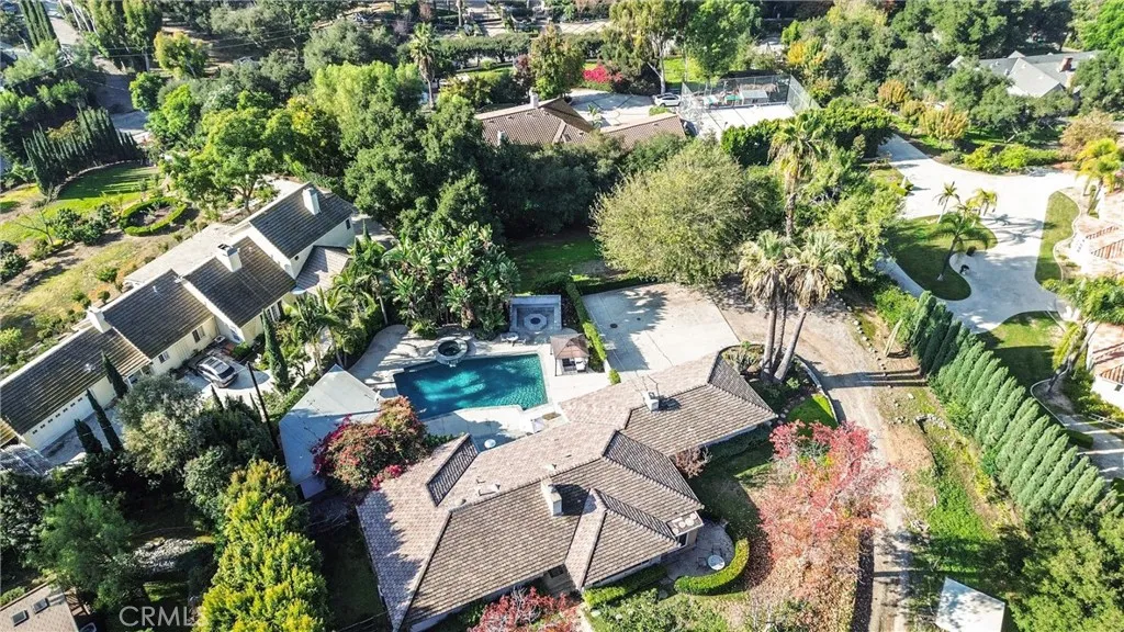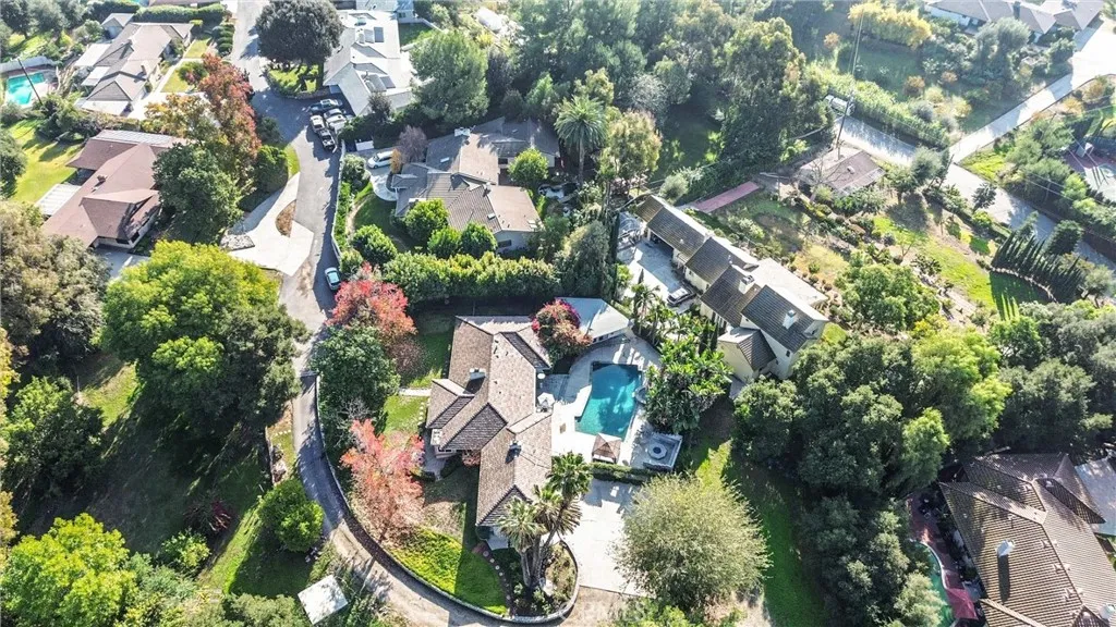 Welcome to this one-of-a-kind custom estate, beautifully surrounded by mature trees and tucked away on an exceptionally private street in the prestigious South Hills community. This serene residence sits at the end of a gated cul-de-sac on an expansive 41,039 sq ft lot, offering privacy, space, and a truly tranquil setting. The thoughtfully designed floor plan features 3 bedrooms and 3 bathrooms, along with an additional approx. 300 sq ft pool house with a kitchenetteperfect as a guest suite, creative studio, or entertainment retreat. Enjoy multiple inviting living spaces, including a warm and welcoming family room with a fireplace, and a charming living room with hardwood floors, a second fireplace, and large windows framing peaceful views of the surrounding trees. The upgraded gourmet kitchen boasts stainless steel appliances and granite countertops, ideal for home chefs and gatherings. The outdoor grounds are a true highlight, offering a spacious front and backyard designed for both relaxation and entertainment. Amenities include a sparkling pool and spa, a cozy fire pit, and expansive open areas with potential for a tennis court, horses, or custom outdoor enhancements. Additional features include RV parking, proximity to top-rated South Hills schools, and convenient access to the South Hills golf course and country club. Located in an upscale neighborhood known for its beauty and privacy, this property offers a rare opportunity to enjoy luxury living in a peaceful, natural setting.