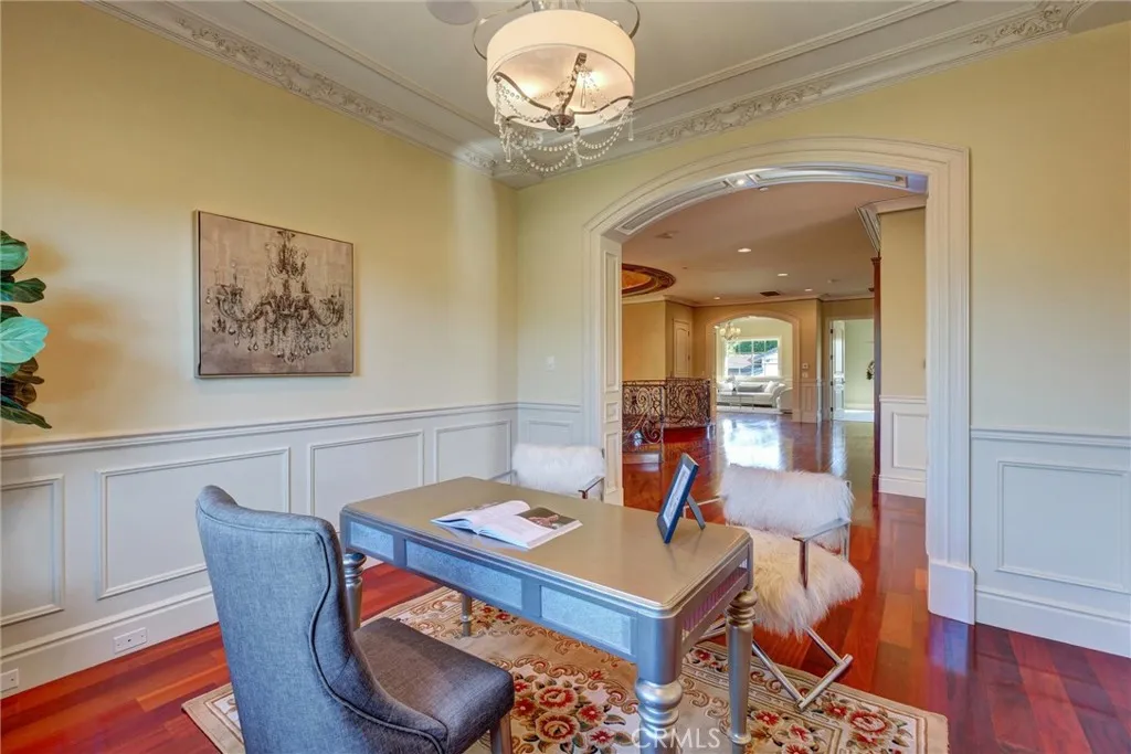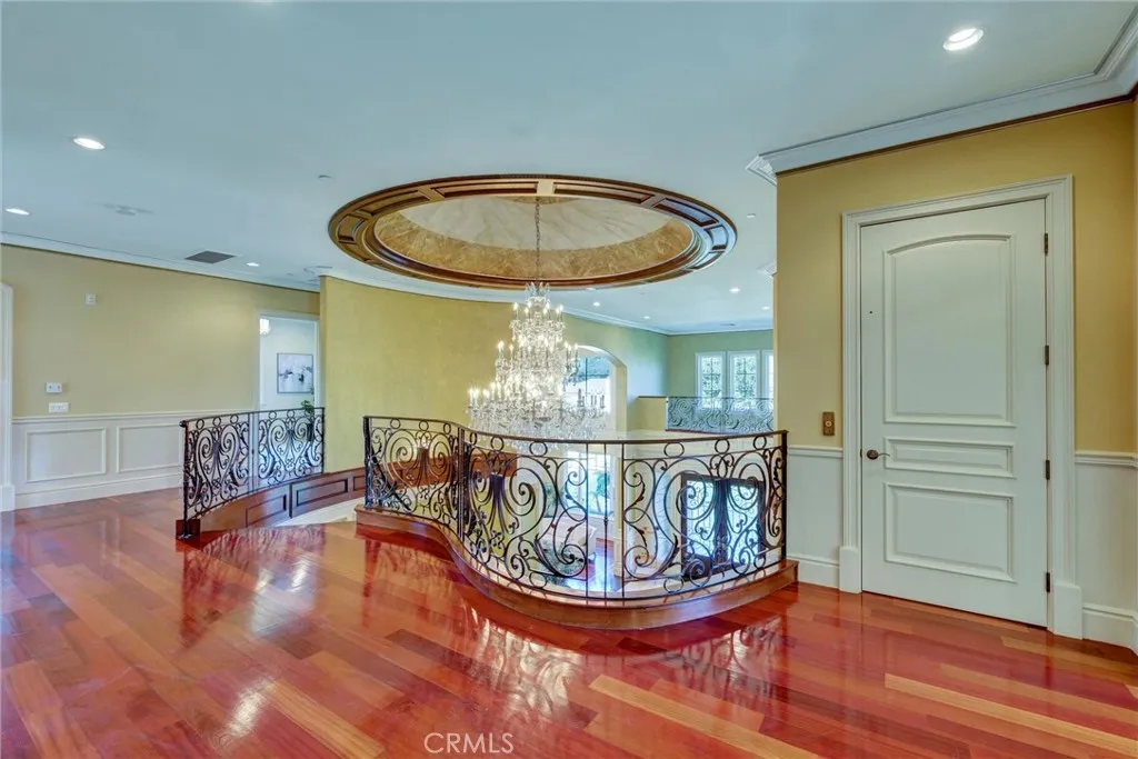This luxurious, modern French-style home in Arcadia showcases exceptional architectural design and craftsmanship. Upon entering, you are greeted by a dramatic 25-foot cathedral ceiling, stunning 6-foot crystal chandeliers, a marble foyer, and grand double glass-and-iron doors. The property is gated and private. The residence features six bedroom suitestwo on the main level and four upstairsalong with seven bathrooms, a formal living room, a formal dining room, and a spacious family room with a wet bar overlooking the beautifully landscaped backyard. The outdoor area includes a saltwater pool and spa, a basketball court, and a patio ideal for entertaining. Additional highlights include an 8-seat Blu-ray/3D home theater, a private elevator, a separate wok kitchen, a wine cellar, and professional Viking appliances, brand new carpet, new paint. Elegant details such as coffered ceilings, crystal chandeliers, Italian marble, granite finishes, custom moldings, a security camera system, and an intercom system complete this exquisite home. A must-see property!