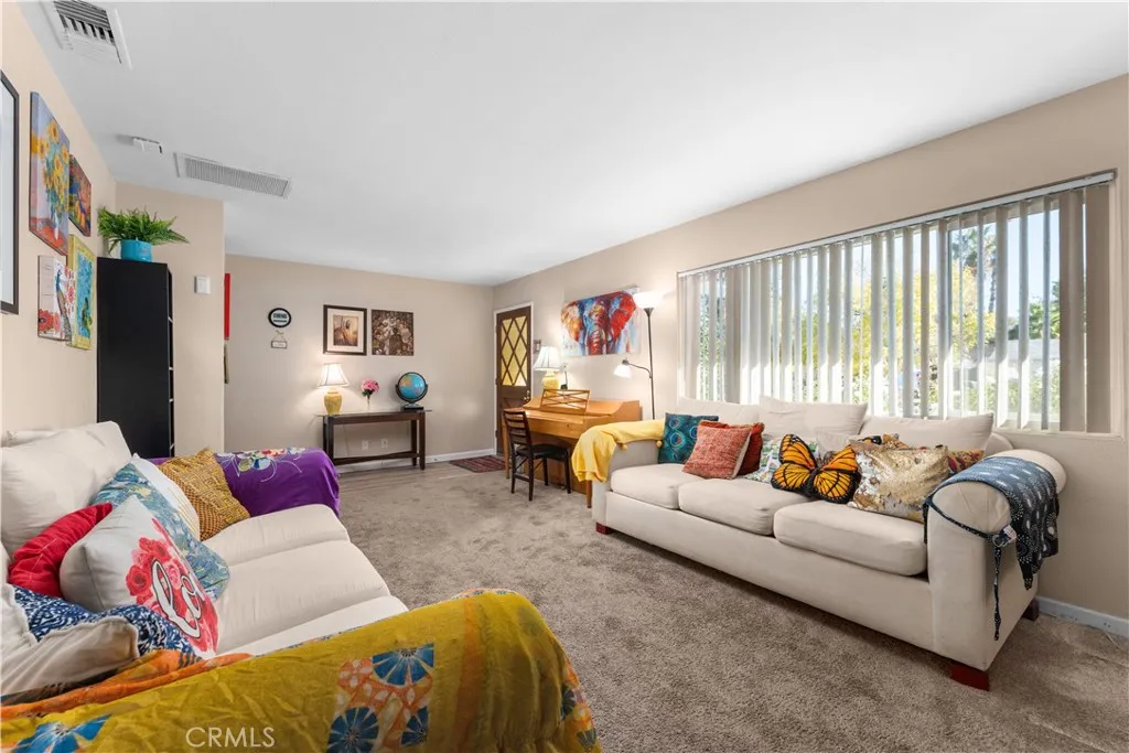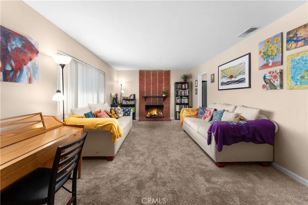 Welcome to this charming and well-maintained single story 3-bedroom, 2-bath home situated on a spacious 8,276 sq ft lot in Hemet. Offering 1,201 sq ft of comfortable living space, this home blends character, functionality, and thoughtful upgrades throughout. As you enter, youre greeted by laminate flooring in the hallway, leading to a cozy carpeted living room to the left, featuring a beautiful red brick fireplace that adds warmth and timeless charm. Continue straight into the kitchen and dining area, creating a seamless and inviting space for everyday living and entertaining. The kitchen was updated in 2020 and features updated countertops, along with a newer stove and microwave, offering both style and convenience. A tankless water heater (2016) adds to the homes efficiency. Down the hall to the right, youll find two bedrooms and a guest bathroom with updated fixtures. The primary bedroom includes its own private bathroom, providing a comfortable retreat. An additional bedroom located near the kitchen offers flexibility for guests, a home office, or hobby space. The home also includes a whole house fan (2018), a newer A/C condenser (2021), and updated copper plumbing, major upgrades that bring peace of mind. Step outside to a generous backyard featuring two storage sheds (10x10) and a trampoline that will remain, making it ideal for entertaining, storage, or outdoor enjoyment. With its thoughtful improvements, functional layout, and spacious lot, this home is a fantastic opportunity for buyers seeking comfort, value, and move-in readiness. Dont miss your chance to make it
