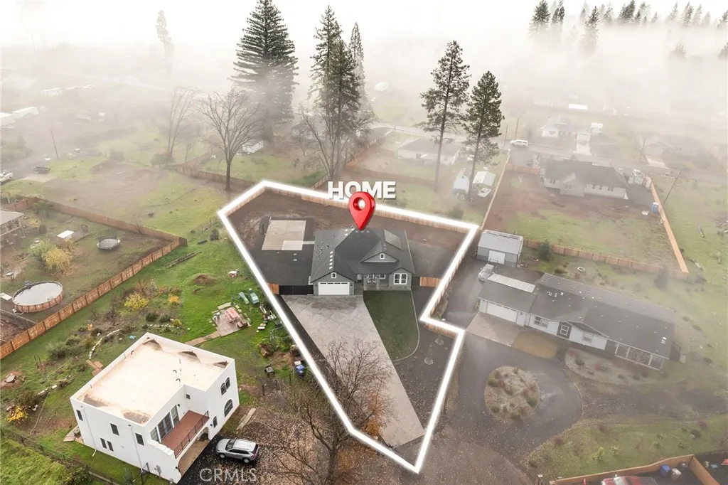 Welcome to this beautifully crafted new build on Larissa Lane, offering modern design, quality finishes, and exceptional privacy. Featuring 1,886 square feet with 3 bedrooms and 2 baths, this home sits on a quiet private lane and includes an impressive concrete driveway with a diamond-pattern finish, gated parking for storage or recreational use, and even a dedicated basketball court. Enjoy energy efficiency with owned 3 kW solar, plus a spacious covered patio that extends your living space outdoors. Inside, the home showcases a contemporary style with warm wood accents, a stunning fluted wood tile fireplace feature, and a thoughtful split-bedroom floor plan that provides comfort and functionality. The kitchen and living areas blend modern trends with inviting design elements, making the home feel both stylish and welcoming. With its combination of privacy, premium finishes, outdoor amenities, and new construction peace of mind, this property is a standout opportunity in Paradise.