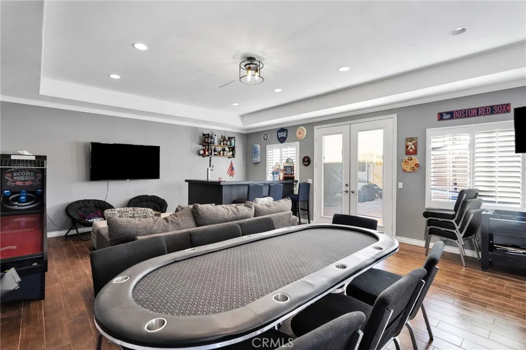 Life behind the gates is better, and this beautifully appointed Verandas residence proves it. Tucked away on a quiet cul-de-sac at 12389 Winesap Rd in Apple Valley, this refined home offers 5 bedrooms plus an office and 2.5 baths, combining comfort, space, and resort-style living in one of the areas most sought-after gated communities. The home has been meticulously cared for and features paid-off solar approximately five years old with a long-term warranty, elegant tile flooring throughout, a formal dining room, built-in speakers, and a warm living room fireplace that sets the tone for everyday luxury. The chefs kitchen is both stylish and functional with granite countertops, a walk-in pantry, and a KitchenAid commercial-style gas range, ideal for entertaining or everyday living. The primary suite is a true retreat, showcasing granite counters, dual vanities with a dedicated makeup area, a Jacuzzi tub, glass shower, and a custom real-wood walk-in closet system. Secondary bedrooms offer thoughtful details including built-in closet systems, while the laundry room includes cabinetry and counter space for added convenience. Step outside to a private backyard designed for relaxation and entertaining, complete with a saltwater pool and heater, built-in BBQ island, firepit, inground trampoline, RV parking, and a Shed World storage shed. A standout feature is the fully permitted 520 sq ft detached pool house or game room with tile floors, crown molding, electric, and a split HVAC system; this incredible space is not included in the homes square footage and adds exceptional versati