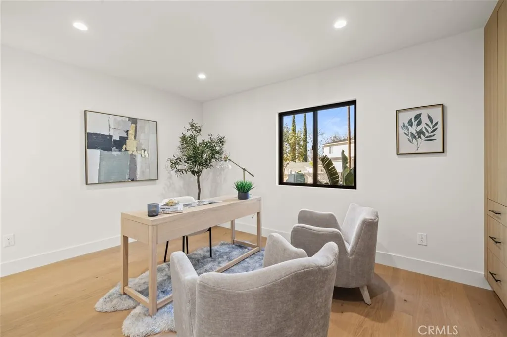 Welcome to this Stunning Burbank Hills Home Perfect for Multi-Generational Living or Income Potential! Step into this beautifully remodeled property where timeless style meets modern convenience. Extensively updated and expanded, this home now features three ensuite bedrooms, a powder room, and an open-concept floor plan designed for comfortable living and effortless entertaining. Enter through the large covered front porch and be greeted by high tray ceilings and abundant natural light that fill the spacious interior. The custom kitchen is a chefs dream, showcasing Taj Mahal quartz countertops, a generous center island with seating for four, and top-of-the-line stainless steel appliances, including a drawer microwave conveniently built into the island. The dining area flows seamlessly into the main living space and opens completely to the outdoor patio through magnificent bifold doors, creating an ideal indoor-outdoor living experience. The primary suite offers a true retreat with two walk-in closets and a spa-inspired bathroom featuring a soaking tub, double vanity, and a custom-tiled shower that exudes elegance. At the rear of the property, discover a recently built 749 sq. ft. one-bedroom, one-bathroom ADU with brand-new paid solar panels. Thoughtfully designed to mirror the finishes of the main home, this accessory dwelling unit provides exceptional flexibility for guests, extended family, or rental income. Additional highlights include a two-car garage with an epoxy-coated floor and finished walls, and a New Tech Norwegian teak-finish siding faade that enhances the h