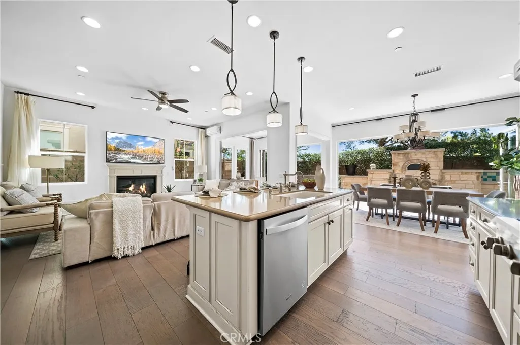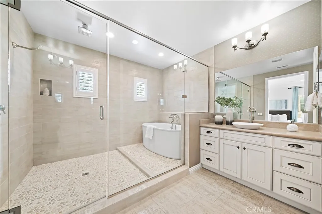 Fresh new paint and Huge price improvement! Welcome to this exceptional former builder model home in the highly sought-after Stonegate community of Irvine, built as part of the prestigious Auburn Collection by Richmond American Homes. Designed to showcase the builders finest craftsmanship, this most popular floorplan offers a 10-foot-high ceiling, a formal entry, four spacious bedrooms, including a highly desirable downstairs bedroom, four full bathrooms, an expansive upstairs loft, and a bright conservatory room, providing outstanding flexibility for modern living. ***** As a formal model home, the property features extensive high-end builder upgrades and luxury finishes throughout. The south-facing orientation fills the house with abundant natural light, enhancing its open and elegant atmosphere. A dramatic wall of luxury folding glass doors creates a seamless connection between indoor and outdoor livingperfect for entertaining and enjoying Southern Californias lifestyle year-round. ***** The backyard is a true outdoor entertainers dream, thoughtfully designed for both beauty and function. A striking custom water fountain wall creates a serene focal point, while the built-in pizza oven invites memorable gatherings and alfresco dining. The covered patio offers the perfect setting for year-round enjoyment, whether hosting guests or relaxing in a private retreat. The home enjoys one of the best locations in the community, offering exceptional privacy with no neighbors behind and serene backyard views overlooking the community swallow park. ***** Residents of Stonegate benefi
