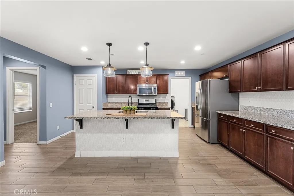 OPEN HOUSE 2/7/2026, 11AM-2PM!! Welcome to this MOVE IN READY home located in a no HOA community located near local freeway access. This property offers 5 bedrooms, 3.5 bathrooms PLUS A LOFT. The downstairs bedroom is a JUNIOR suite with its own bathroom! The backyard is equipped with low maintenance artificial grass and a nice sized patio cover, the front yard has a large driveway with the possibility of RV parking! Open concept kitchen is completed with granite countertops, and a subtle white subway tile backsplash and a good sized island and pendant lighting. This home has upgraded "wood-like" tile flooring on the main level and NEW carpet throughout the rest of the home. On the first floor you will find the first of five bedrooms, upstairs there is a loft for an additional living space, space for kids,or what have you. Did I mention the View? NO NEIGHBOR BEHIND, which offers privacy and serenity. This home also has PAID OFF SOLAR!