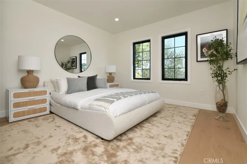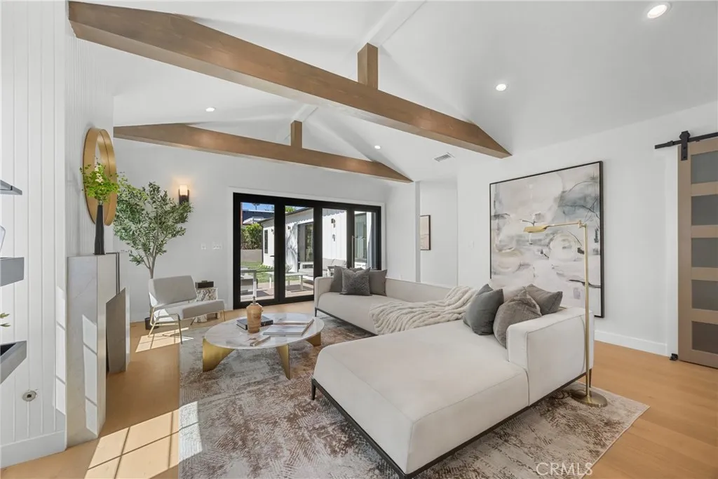 Beautiful and turnkey home is where you start a fresh new life chapter and createmeaningful, lasting memories-nowwith an upgradedflat backyard, landscaped and private. Perched above the street, this masterfully expanded and reimagined home immediately commands attention. Newly rebuilt home offers 4 bdrms, 3.5 baths, approx. 2,227 sq ft of thoughtfully designed living space for modern living, defined by soothing tones, clean lines, and thoughtfully curated spaces. Offering a luxurious yet relaxed So.Cal lifestyle, provides a neutral canvas and striking architecture blends a warm contemporary design with modern amenities. Step inside to a welcoming foyer, an elegant powder room that sets the tone for the homes sophisticated appeal. The expansive open concept living and dining areas feature dramatic beamed vaulted ceilings that elevate the entertaining spaces, recessed lighting, abundant windows that flood the interior with natural light. The dining area, ideally positioned off the entry, creates an inviting setting for gatherings both intimate and grand. At the heart of the home is a stunning chefs kitchen, appointed with sleek cabinetry, quartz countertops, a large pantry, and a generous island with seating perfect for casual meals or hosting guests. Wide-plank engineered wood flooring flows seamlessly throughout, enhancing the homes cohesive design.The serene primary suite, privately situated at the rear of the home, features vaulted ceilings, plentiful natural light, a large custom closet with built-ins, a spa-inspired bath complete with dual vanities, a full size soaking