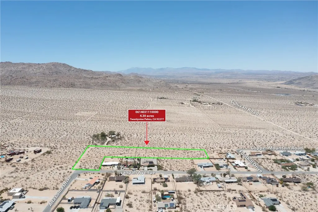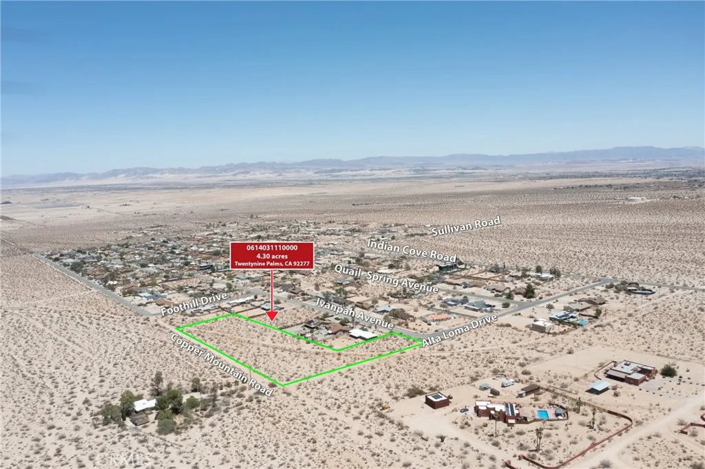***Residential Zoning*** This large lot with over 4 acres has access on on a paved road! Surrounded by houses, come build your next home with one of the biggest backyards in the area! Online reports are stating there is water at the street and power lines appear to be behind the home for easy set up for utilities. The city sits near the north entrance of one of Joshua Tree National Park which offers hiking, rock climbing, camping, nature photography, and exploration! 29 Palms offers a creative community of artists, galleries, studios, murals, and public art enriches town life and gives it an inspiring vibe. It appears the backside of the parcel as well has access via a dirt road.. All information is deemed reliable but is the buyers responsibility to verify. ***Residential Zoning***
