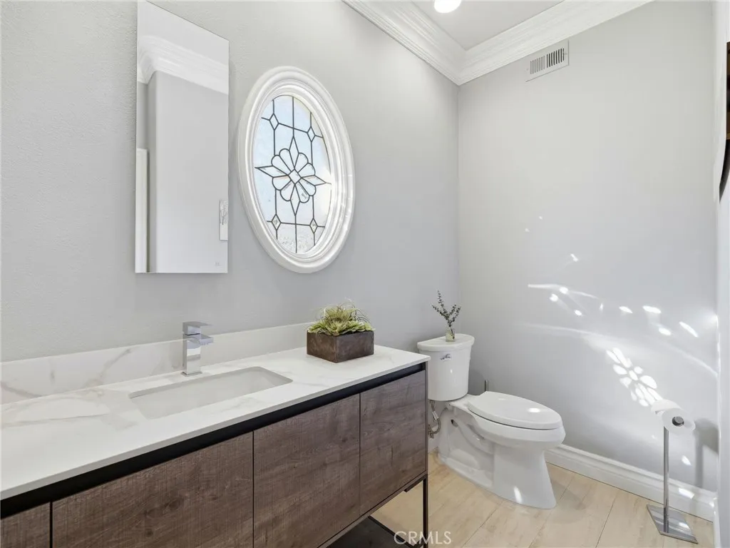 REDUCED $50,000!!! Welcome to 11030 Willowbrae Ave., ideally located near Sierra Canyon School and tucked into the hills of Chatsworth just west of Canoga Ave. This hidden gem sits in a prestigious double cul-de-sac enclave known for expansive estate homes, generous lots, and a serene, refined streetscape where privacy and tranquility prevail. Set on an impressive .40-acre corner lot, this elegantly remodeled nearly 4,000 sq ft residence was built in 1989 and offers 4 bedrooms and 4.5 baths with a thoughtfully designed layout ideal for large or multi-generational livingbalancing connection and privacy with ease. A palm-lined driveway leads to a three-car garage, while the resort-style backyard features a private saltwater pool and spa, resurfaced with Pebble-Tech and enhanced by LED lighting. Double front doors open to a dramatic two-story foyer anchored by a striking three-foot chandelier of layered sculptural glass, creating a luminous and unforgettable first impression. The step-down living room is centered by a marble fireplace and sunlit windows, while double doors lead to a formal dining room perfect for entertaining. Chocolate-toned wood floors and elegant 8-inch crown molding lend understated modern sophistication throughout. The updated chefs kitchen features stainless steel Viking appliances, including a double oven, warming drawer, built-in refrigerator, and new dishwasher, along with granite countertops, glass-tile backsplash, walk-in pantry, large center island, and a cozy coffee nook overlooking the manicured backyard and pool. The kitchen opens to a spacious