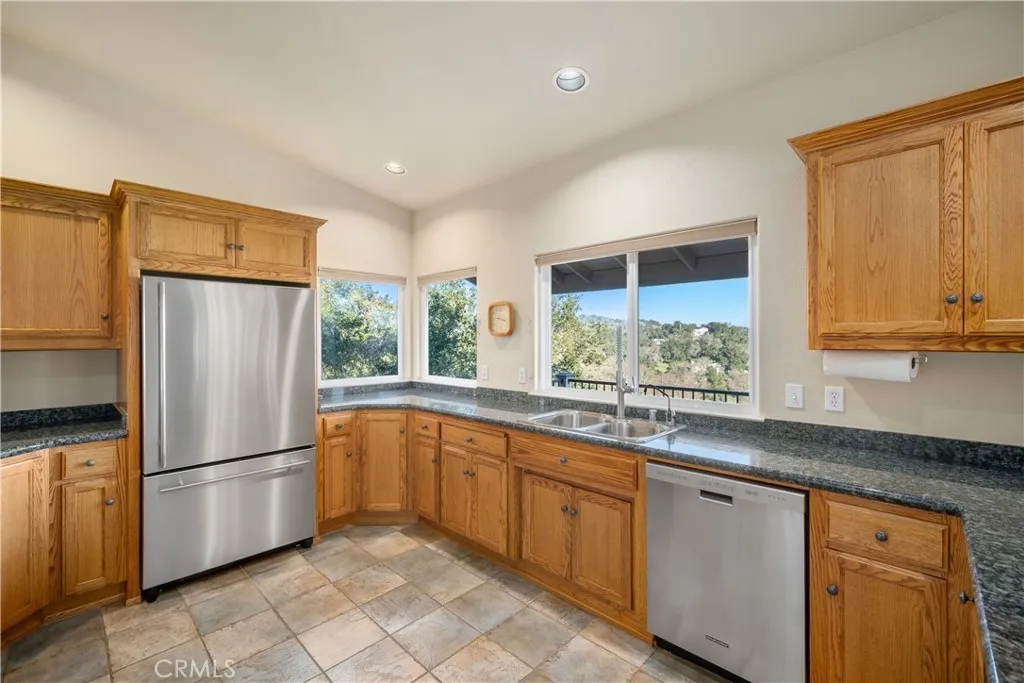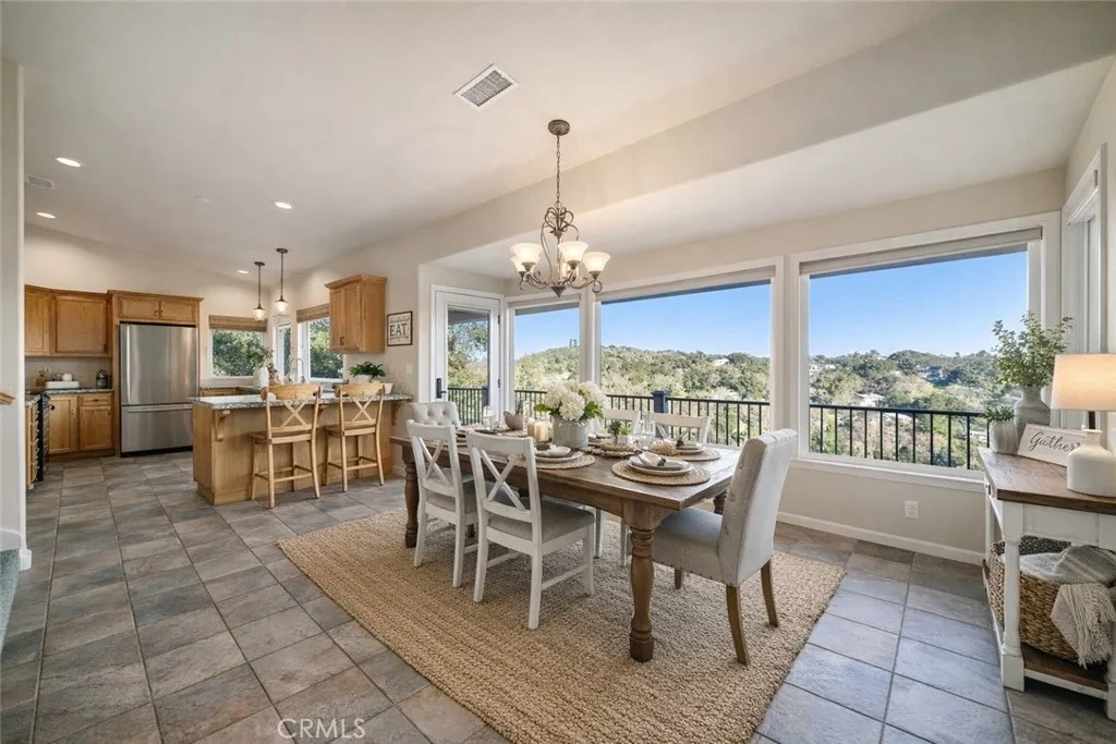Custom-designed 4-bedroom 4-bath home offering panoramic views, privacy, and exceptional proximity to townplus an approximately 900 square foot finished storage space beneath the garage with exciting potential for guest quarters, a studio, or flexible use. Set on a quiet, oak-studded street just minutes from Atascaderos vibrant downtown, this beautifully maintained residence delivers the elevated feel of Westside living with rare convenience. Enjoy sweeping views across the hills and townincluding a direct view of Atascaderos iconic City Hallwhile remaining only a short drive to Highway 101, restaurants, breweries, and local shops. The main level is thoughtfully designed for single-level living, featuring an open-concept kitchen, dining area, and living room anchored by vaulted ceilings, a fireplace, and expansive glass that draws the outdoors in. Nearly every room opens to the generous deck, creating a seamless connection between interior spaces and the surrounding landscape. The primary suite is also located on this level and includes direct deck access, dual sinks, travertine tile, and a walk-in shower with frameless glass. A spacious laundry room with sink, a convenient half bath, and exceptional built-in storage complete the main floor. Downstairs, the home offers a highly functional and flexible layout with three bedrooms and a large great room. One bedroom is an en-suite with a walk-in closet, while another bedroomcurrently well suited as a home officeoffers versatility as either a workspace or sleeping area. The great room functions beautifully as a family room, gam