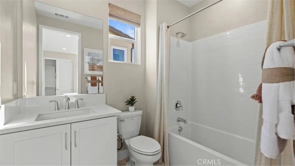 At Great Park's newest home collection RHEA, the plan 1 home features a flexible and well-designed home built for modern living. The 1st floor features a 2-bay garage and a bedroom perfect for guests, or a private home office. The second floor showcases an entertainers kitchen with an large kitchen island, plentiful cabinets for storage, and a spacious balcony. The third floor offers a spacious primary with an extra long private balcony. There is an equally spacious secondary bedroom with its on en-suite bathroom. Between the secondary bedroom and the primary suite is a conveniently located laundry closet. This home is just a short walk to a stunning 13-acre park with beautiful amenities including 2 pools, pickle ball, handball, basketball, tot-lot and more. The home is in a desirable street-facing location, offering easy guest parking in front.