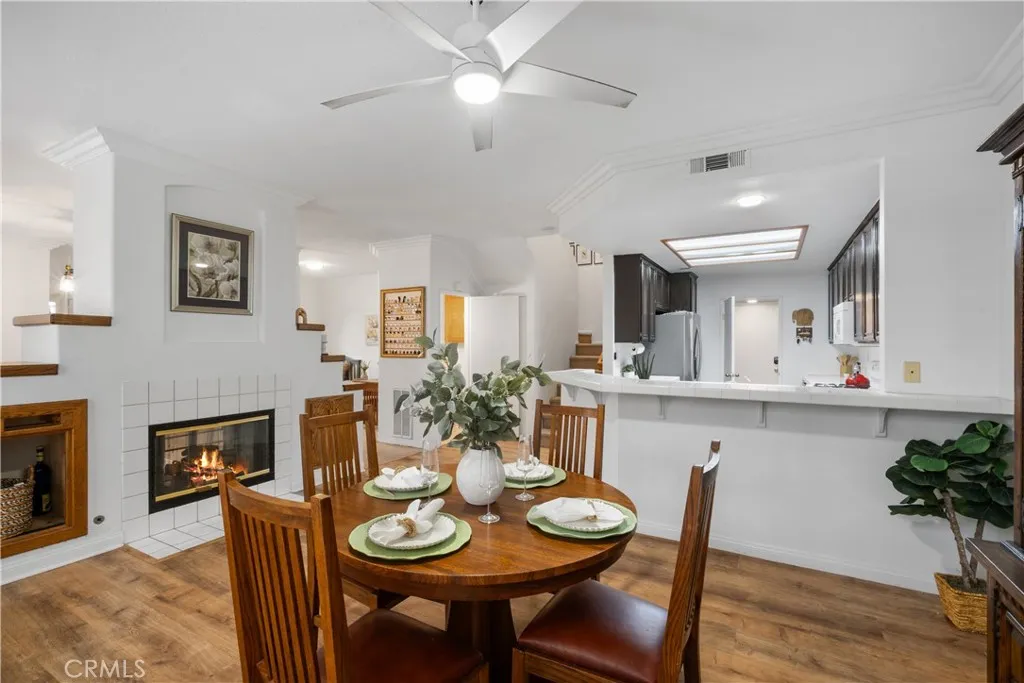 Welcome to this inviting and well-maintained 3-bedroom, 2.5-bath townhome with a versatile downstairs flex room that can easily function as a 4th bedroom, office, or den. Thoughtfully upgraded and move-in ready, this home offers comfort, style, and convenience in a highly desirable Corona location. The living room features a cozy fireplace, crown molding, plantation shutters throughout the home, and updated lighting. The spacious primary suite includes a new ceiling fan, and the home offers ample natural light and a warm, welcoming feel. Additional highlights include direct-access 2-car garage, inside laundry, and plenty of functional living space. A rare feature for this community is the private side yard garden, perfect for relaxing or entertaining. The grassy entry area provides a charming, single-family feel from the front. Located near the community pool, spa and guest parking and dog park for added convenience. Prime location with easy access to the 91 Freeway, ideal for Orange County commuters. Close to shopping, dining, and everyday conveniences including Costco Wholesale, 99 Ranch Market, UFC GYM, 85C Bakery Cafe, Texas Roadhouse, PetSmart, The Home Depot, The Promenade Park and Rock Vista Park. Schedule your tour today! A wonderful opportunity to own a well-appointed home in a convenient and commuter-friendly location.