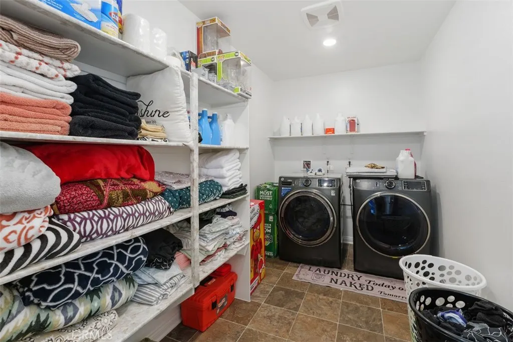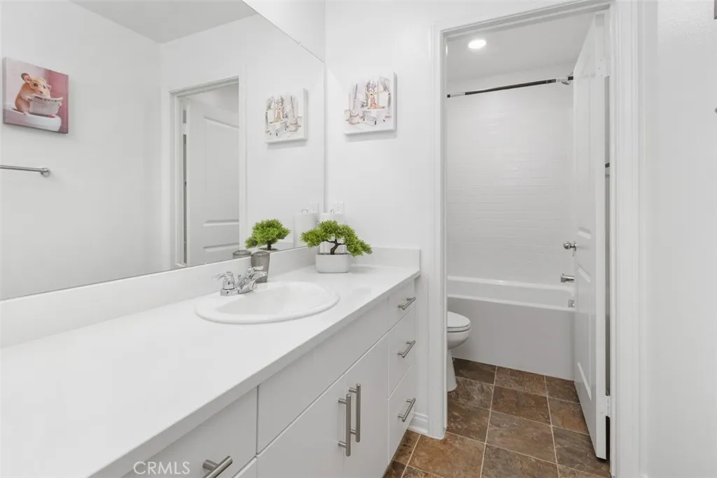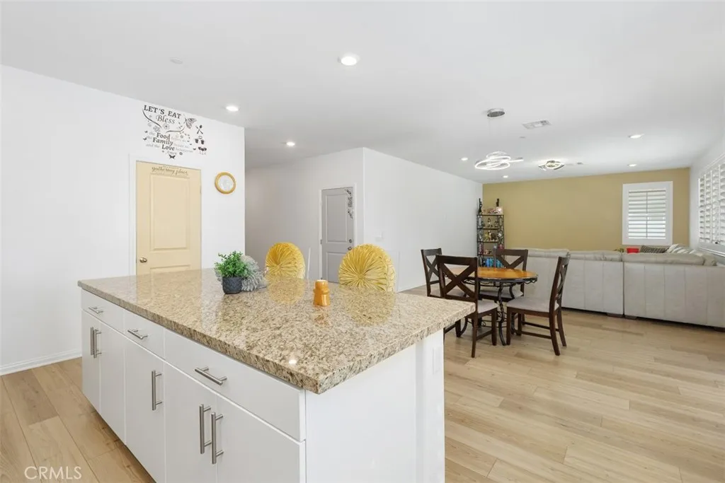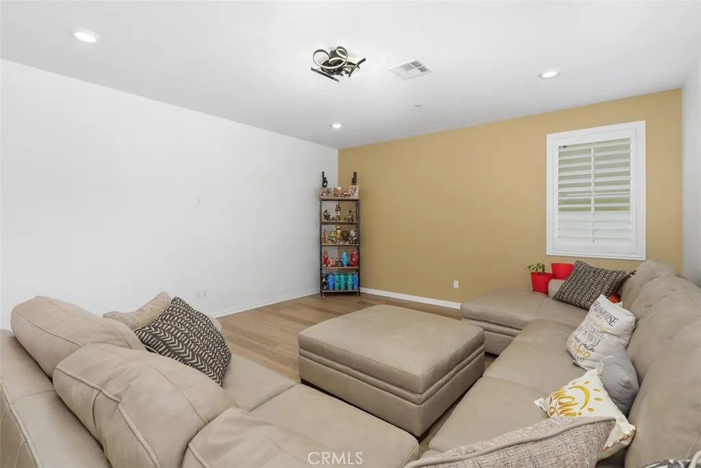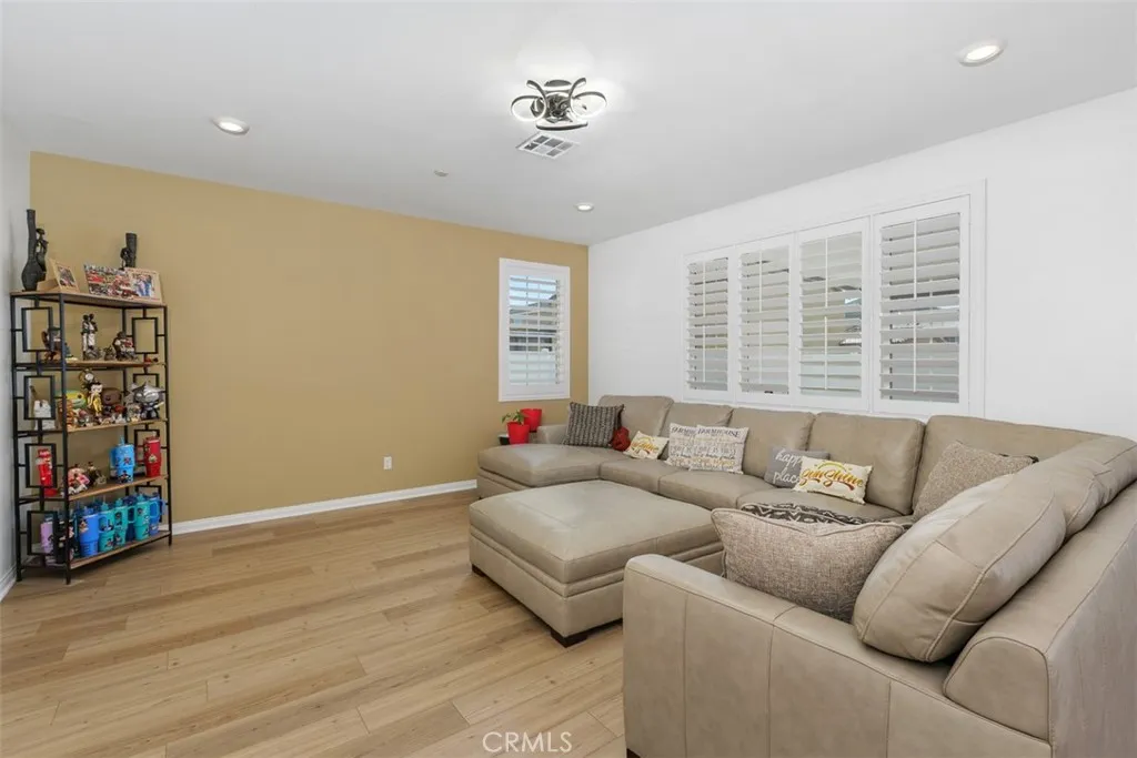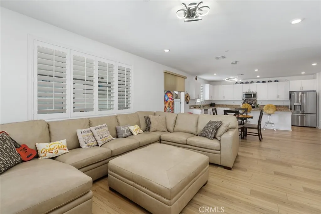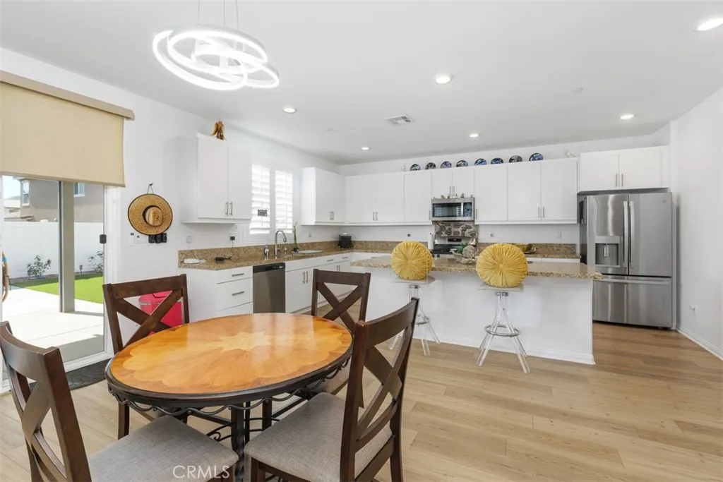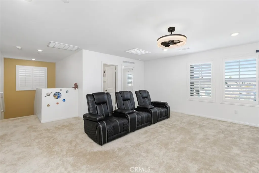 Welcome to Colt Ridge in Hemet move-in ready and beautifully designed! This two-story home offers 4 bedrooms, 3 full bathrooms, and approximately 2,710 sq. ft. of living space with a 3-car garage. An extended concrete driveway and inviting front porch create great curb appeal. The flexible floor plan includes a main-level bedroom and full bathroom, ideal for guests or multi-generational living. The main level features upgraded flooring, along with modern lighting and ceiling fan fixtures throughout. The spacious Great Room flows seamlessly into the open-concept kitchen with white cabinetry and a large walk-in pantry, and dining area. The kitchen features a large center island, granite countertops, stainless steel appliances, and ample cabinetry. Sliding glass doors lead to the backyard with a covered patio with 3 stylish outdoor lighting & fan fixtures, a generous concrete area, and low-maintenance artificial turf. Upstairs includes a spacious primary suite with an en-suite bathroom and walk-in closet, plus a versatile loft, two additional bedrooms, a full bathroom, and an upstairs laundry room. Additional features include a Tesla charging station in the garage, a water softener and filtration system, and an energy-saving solar system. Colt Ridge residents enjoy access to a recreation center, pool, spa, and BBQ areas. Conveniently located near Diamond Valley Lake, shopping centers, dining, and entertainment, including Village West Shopping Center, Hemet Plaza, Hemet Mall, and Soboba Casino. Move-in ready and offering space, functionality, and community amenities dont miss