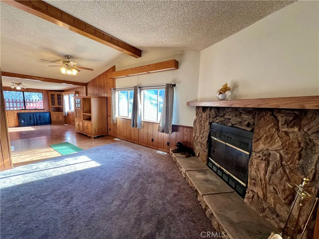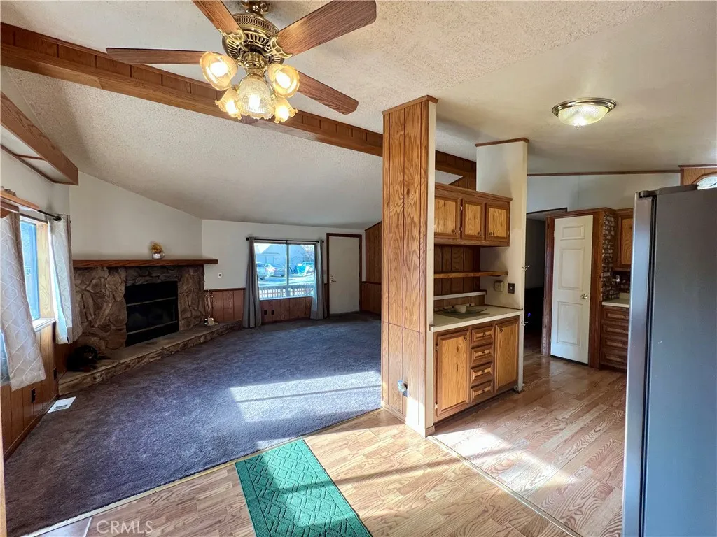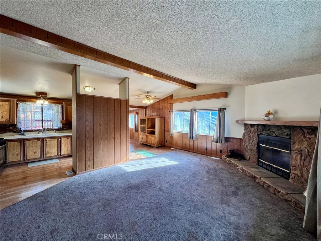 SINGLE STORY MANUFACTURED HOME ON OVER 1/2 ACRE WITH DETACHED OVERSIZED GARAGE!! This 3 bedroom, 2 bath home welcomes you with a charming picket fenced front yard and inviting covered front porch. The living room has a vaulted ceiling, cozy fireplace and large windows to let the sunshine in. The kitchen has lots of cabinets and counter space including a built-in hutch. Just off the kitchen is the dining room with a sliding glass door that opens to the outdoor entertaining area and spacious backyard with a deck where you can enjoy the beautiful mountain views and starry nights! The primary bedroom has a large walk-in closet. Just across the hall are 2 other bedrooms. The 714 sq.' detached garage has a back stairway that leads to an upper floor that could be used for an office, studio or extra living space. Located on the "Sunny Side" of Frazier Park, close to shops and restaurants. Just a 40 minute commute to Santa Clarita and Bakersfield, in a quaint mountain community where you can enjoy a slower paced lifestyle and 4 seasons of nature! Additional parcels included in sale: APN#s 25907204003 and 25907214002.