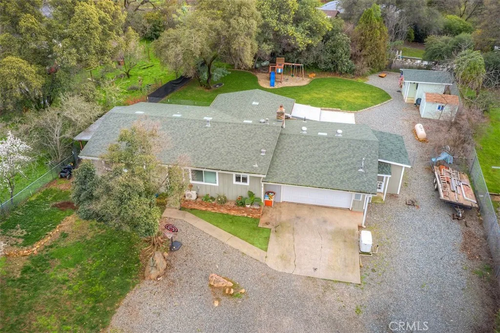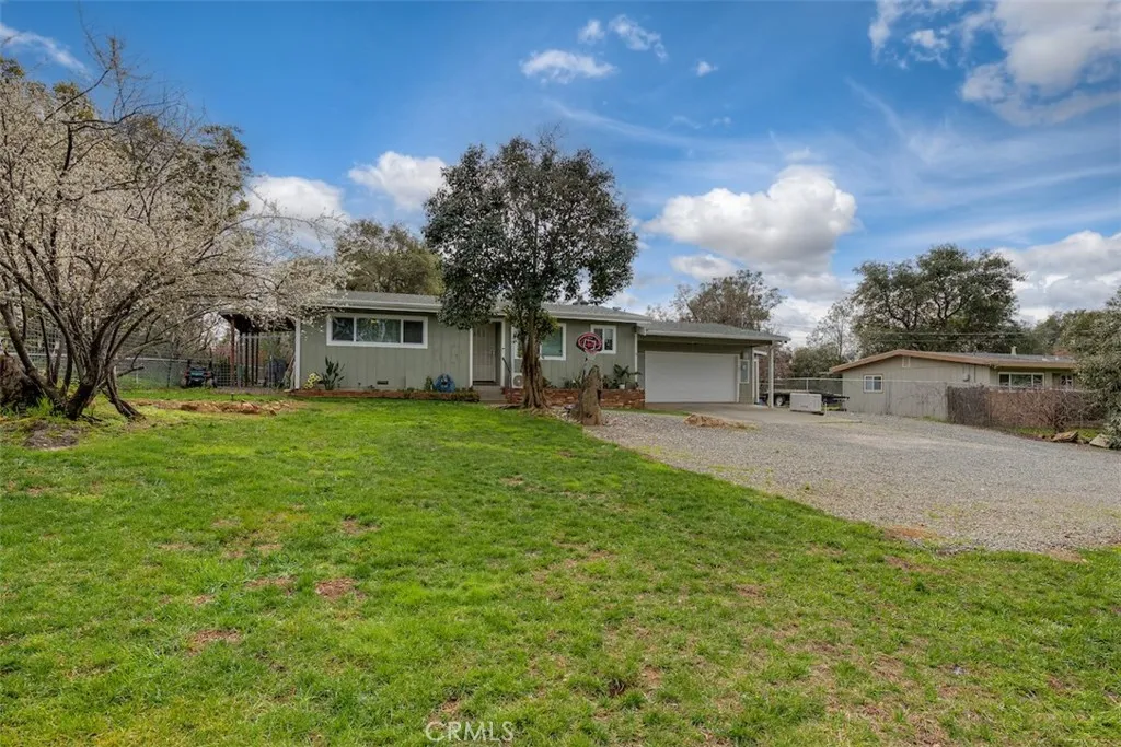 Lake Lifestyle Country Living! Explore this larger than 1462 sq ft home, 2 bed/ 1.75 bath, w/a garage conversion. When you enter the front door, to the right, find a spacious kitchen/dining area, breakfast bar, plenty of cupboards & tiled counter space, w/Dishwasher, Elec Range/hood, & Refrigerator. Off the kitchen find that conversion/bonus room, now used as a laundry area & huge Primary Bedroom w/a 3/4 bath, & large closet w/a barn door closure. Room features high beam ceiling, hardwood flooring, mini-split, & slider out to patio. Spacious, full of light & just beautiful! Straight back, off kitchen find the cozy Living Room w/wood burning fireplace, hardwood flooring, & a solar tube bringing in more light. Joining this, find the Family Room , w/large window with shelf for plants or seating, & enjoy the view of recently landscaped back yard. Off that room, exit via the slider, into the enclosed patio. Down the hall to the left of entry, find the main full bath, & 2 good sized bedrooms. There are 5 total mini-splits for heating & cooling efficiency, & 3 pet doors! The layout of this home really lends to comfortable living! Outside front & back yards find assorted fruit trees, fully fenced/crossed fenced, w/gates, making this yard so child or pet friendly! Also a covered deck fenced area, a pet run, on side of house. Water service is SFWP, the most economical water service in our area! Property is located just moments from Downtown, Schools, Shopping, EZ commute routes, Lake Oroville & all that this beautiful LAKE Community has to offer! MOTIVATED SELLERS! FOR APPT TODAY, ca