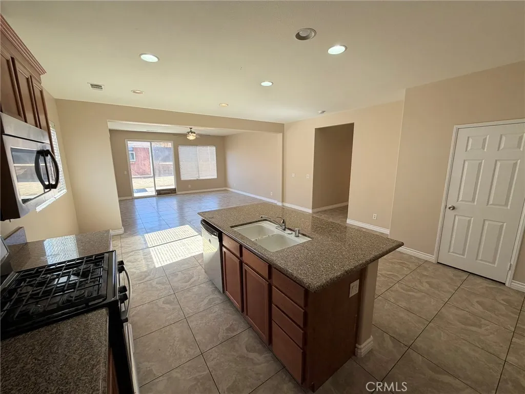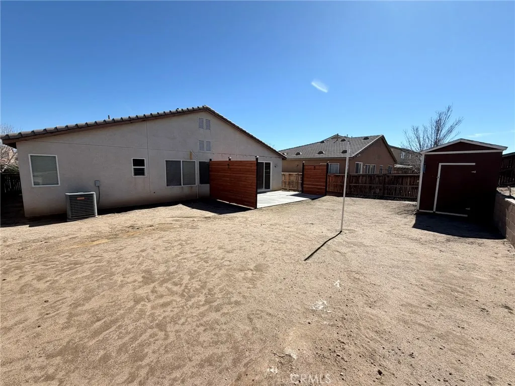 Welcome to this beautifully maintained 4-bedroom, 2-bath single story home offering 1,864 sq. ft. of living space on a 0.17 acre lot in Victorville. Built in 2009, this turnkey property features a spacious open concept layout. Inside, youll find ceramic tile throughout the main living areas, with new carpet in the bedrooms for added comfort. The bright kitchen showcases granite countertops, stainless steel appliances, abundant cabinetry, recessed lighting, and a center island overlooking the dining and living spaces. Ceiling fans throughout help keep the home comfortable year-round. Additional highlights include a dedicated office/den/4th bedroom, indoor laundry room, fresh paint, and a generous primary suite featuring dual vanities, soaking tub, and separate shower & toilet. Step outside to enjoy a walled patio, spacious backyard ready for customization, and a storage shed for extra storage. The attached 3-car garage offers plenty of room for parking and storage, and the home also includes solar to help reduce electric costs. Title and tax reflect 3 bedrooms (front 4th bedroom may be conversion) buyer to verify.