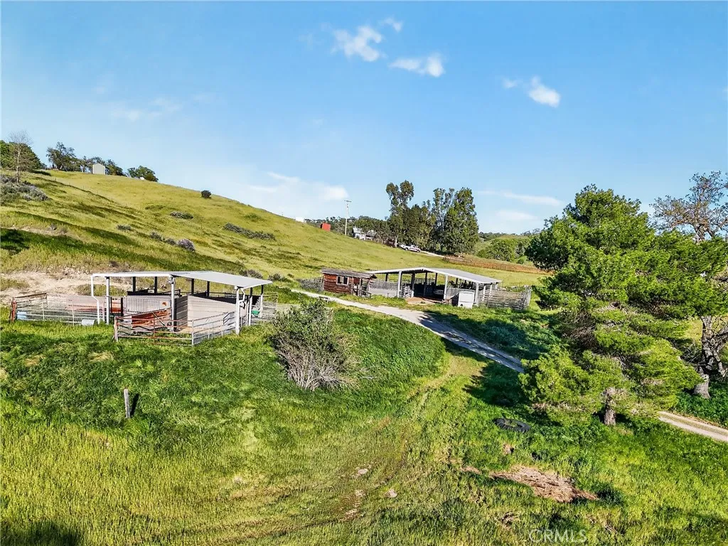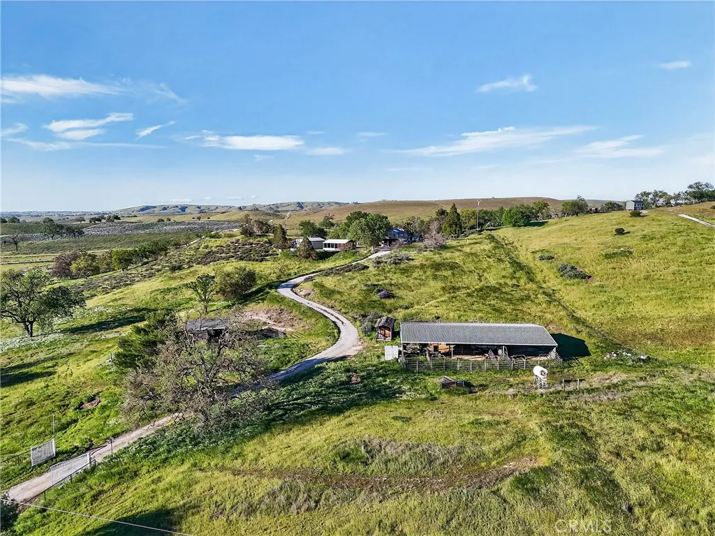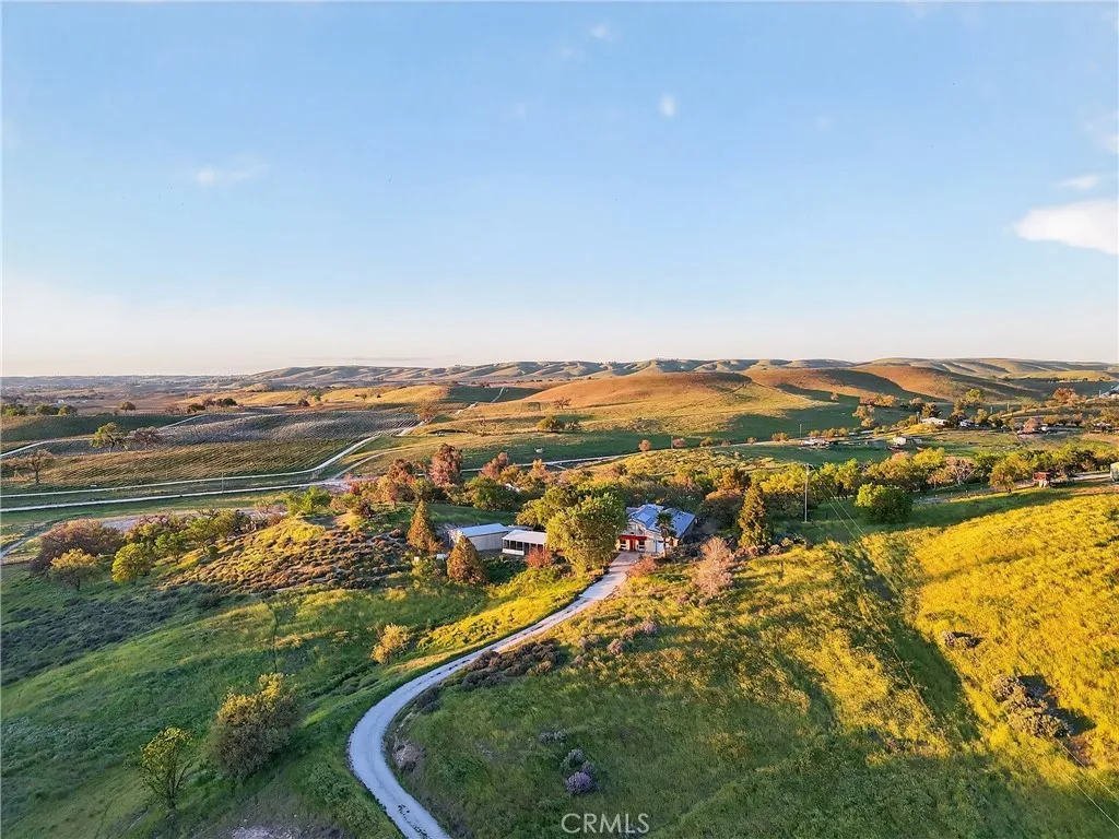 Wake up to wide open skies, rolling hills, and the kind of quiet that reminds you why you love living in Paso Robles wine country. 3476 Redtail Place offers peaceful country living on more than 11 scenic acres, where you can enjoy both sunrise and sunset views from your own private slice of countryside. With nearly 3,000 square feet of living space, there is room to spread out and create the lifestyle you envision. The living room welcomes you with polished concrete floors and soaring high ceilings that enhance the sense of openness and natural light. Nearby, the spacious dining room is ready for gatherings, celebrations, and everyday meals with a view. The kitchen features white cabinetry and updated stainless steel appliances, positioned conveniently near the main living areas. Just beyond, you will find the laundry area, garage access, a guest bath, and a dedicated office space that works well for remote work or managing daily operations on the property. The primary suite is located on the main level and offers generous proportions, an en suite bath with dual sinks, and a walk in shower. It is a comfortable retreat with space to personalize over time. Upstairs, two additional bedrooms offer a unique open connection to one another, creating flexible space for shared living, a creative studio, or a playroom layout. One of these bedrooms includes its own full bathroom suite, adding versatility for guests or extended living arrangements. Step outside and experience the true potential of this property. 2 pole barns, 20x30 shop with concrete floor and 220 power, fenced pasture