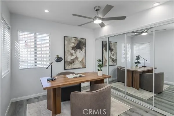 Beautifully Remodeled Single-Story Home in Canoga Park Welcome to this tastefully remodeled 3-bedroom, 2-bathroom single-story family home located in the heart of Canoga Park. Thoughtfully upgraded inside and out, this property blends modern finishes with comfort and functionality. The exterior showcases a brand-new roof and low-maintenance, drought-resistant landscaping accented with stonework. The backyard is a true retreat featuring an abundance of mature fruit trees including guava, lemon, peach, jamun, apple, orange, fig, and pomegranate. Inside, the home is light and bright with fresh interior paint, LED recessed lighting throughout, and multiple skylights enhancing the natural light. Brand-new laminate flooring flows seamlessly through the living spaces. The spacious living/dining area is complemented by two tropical art deco ceiling fans, wood burning Fire Place, while all bedrooms feature mirrored closet doors, ceiling fans, and vertical blinds. The fully remodeled kitchen is a chefs delight, featuring quartz countertops, new shaker self closing cabinets , designer backsplash, a built-in 5-burner stove with new hood, new dishwasher, industrial stainless steel sink, and a water softener system (PentAir,EVERPURE,H-300) conveniently installed under the sink. Adjacent to the kitchen is a functional laundry area with built-in counters and cabinets for added convenience, plus a linen closet nearby for extra storage. Both bathrooms have been completely renovated with quartz countertops and brand new accessories. The hallway full bath with a tub and a double sink convenien