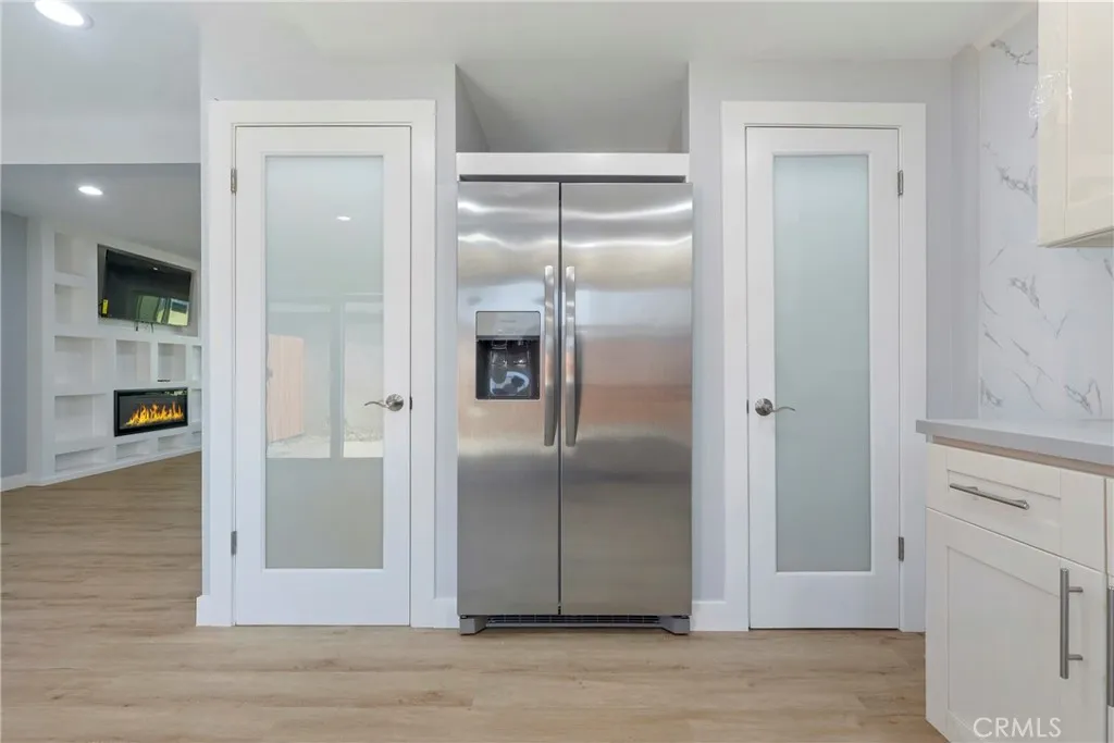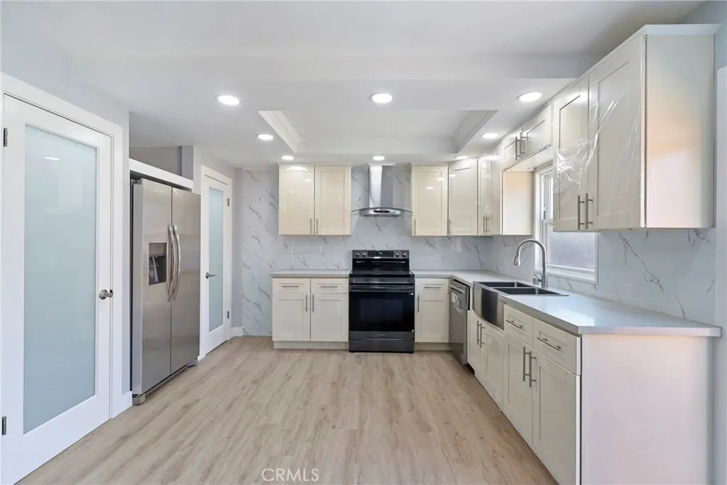 Golf course facing location and Beautifully upgraded Town House. Public records show 4 bed 2.5Ba . One of the upstair bedroom is merged to make a larger MASTER Suite with a modern Bathroom shower. Living room has built in Electric Fireplace with heating , Television . Remodeled kitchen is stunning with Brand new kitchen cabinets, Dishwasher, stove , glass range hood ,Refrigerator and quartz counter tops. Dining area has a counter with a wine cooler. Downstair bathroom has new vanity and sink. Brand new waterproof laminate throughout. Stairs going upstairs has beautiful lighting on each step. There is a private patio in rear perfect for BBQ's--ideal relaxation area. Home has 2 car garage in rear with Laundry hookups. Home has access to two community pools, and a lot of park like open space . HOA dues $288 per month includes Water, Trash, exterior maintenance and the roof. This High demand complex is very close to Downey promenade and top rated Downey school district.