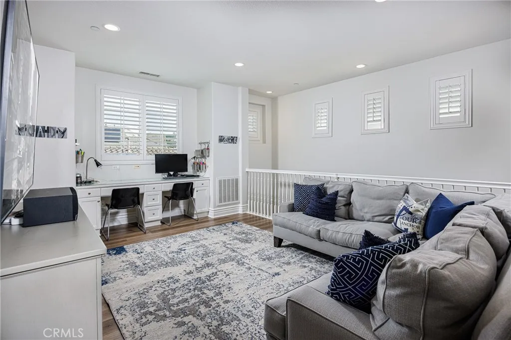 Located within the prestigious, guard-gated enclave of Covenant Hills, this exceptional residence offers a refined blend of timeless elegance, modern upgrades, and resort-style living. Boasting 4 bedrooms, 3.5 baths, and a dedicated office, this beautifully appointed home is designed for both sophisticated entertaining and everyday comfort. Luxury vinyl plank flooring flows seamlessly throughout, complementing the homes light-filled interiors and thoughtfully curated finishes. The gourmet kitchen showcases quartz countertops, classic subway tile backsplash, and abundant cabinetry, creating a stylish yet functional heart of the home. Sustainability meets luxury with a fully owned 29-panel, 10.7-kilowatt solar system, providing impressive energy efficiency and long-term savings. Step outside to a private sanctuary ideal for relaxation and entertaining. The serene courtyard spa offers a tranquil retreat, while the backyard impresses with lush turf, a covered patio, and a large built-in BBQ island with elegant stone countertops, perfect for alfresco dining and hosting unforgettable gatherings. Situated moments from Ladera Ranchs award-winning schools, the exclusive Covenant Hills Clubhouse, and resort-style pool, this remarkable home delivers an unparalleled lifestyle in one of Orange Countys most sought-after communities.