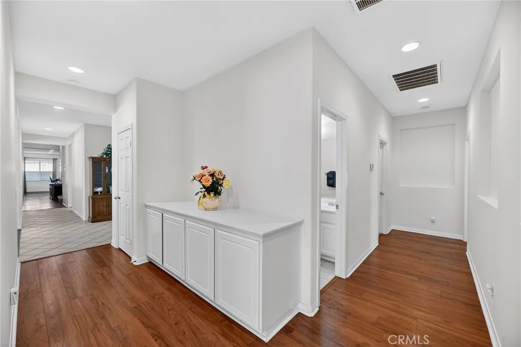 REFRESHED AND READY! CUL-DE-SAC SINGLE LEVEL WITH RARE UPSTAIRS FULL BEDROOM SUITE W/ LOFT! This beautifully updated single-level cul-de-sac home shines with a renovated kitchen, fresh paint touch-ups, and enhanced curb appeal. A rare upstairs retreat expands the living space with a private bedroom, full bathroom, and open loft that oversees the family room. The main floor offers an expansive layout with a spacious primary suite and retreat area, complemented by a luxurious ensuite bath; youll also find two additional bedrooms with a full bathroom. On the other wing there is an additional bedroom with full bathroom, perfect for providing excellent separation for family or guests, or as an office. Designed for both everyday comfort and entertaining, the home features a formal dining room, light-filled family room with fireplace, and an open-concept updated kitchen overlooking the dining space and backyard. Outdoors, enjoy a beautiful front courtyard, perfect for morning coffee; through the kitchen you are invited to the landscaped backyard with custom hardscaping, covered patio with ceiling fan, and a gated flex space ideal for pets, play, or private gatherings. HUGE OPPORTUNITY TO CONVERT THIS HOME INTO A RESIDENTIAL CARE FACILITY RCF OR SOBER LIVING FACILITY BY CONVERTING ROOMS INTO A 7 BEDROOMS DOWNSTAIRS WITH OWNER/MANAGER BED/BATH/LOFT UPSTAIRS! Located in one of Menifees most desirable neighborhoods, this home combines spacious living, thoughtful updates, and next-gen potential - all in a convenient, private setting.