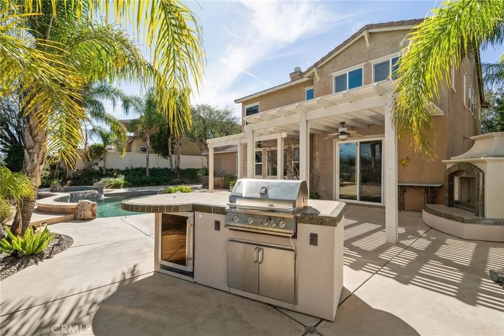 Welcome to Byron Trail in the highly sought-after Fairway Canyon community of Beaumont.?Built in 2006, this beautifully maintained 4-bedroom, 3-bath residence offers 3,065 square feet of spacious, well-designed livingperfect for both everyday comfort and entertaining. Upon entry, youre welcomed by a family room to the right and an elegant formal dining room to the left, creating a warm and inviting first impression. Continue down the hall to the heart of the home, where the open-concept kitchen and living room seamlessly connect. The kitchen features a large center island with bar-top seating, generous cabinetry, and a butlers pantry for additional storage. The adjacent living room is filled with natural light and showcases tranquil views of the backyard, sparkling pool, and surrounding mountains, all complemented by a gas fireplace. The main level includes a downstairs bedroom and full bathroom with a walk-in shower, ideal for guests or multi-generational living. Upstairs, a built-in desk and storage area provides the perfect space for working from home or studying. The expansive primary suite serves as a private retreat, featuring a massive walk-in closet with built-in organizers. The upstairs laundry room, complete with a sink, adds everyday convenience. Step outside to your resort-style backyard oasis, complete with a saltwater pool and spa, built-in masonry fireplace, and BBQ with direct natural gasperfect for entertaining year-round. Enjoy stunning mountain views and the rare benefit of a golf course directly behind the property, offering exceptional privacy with no r
