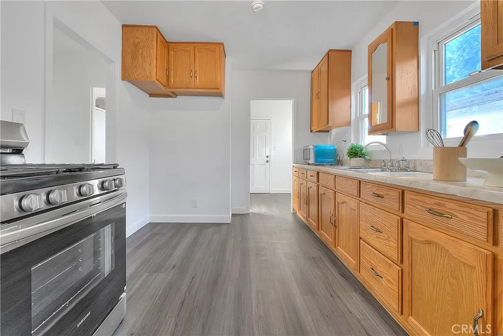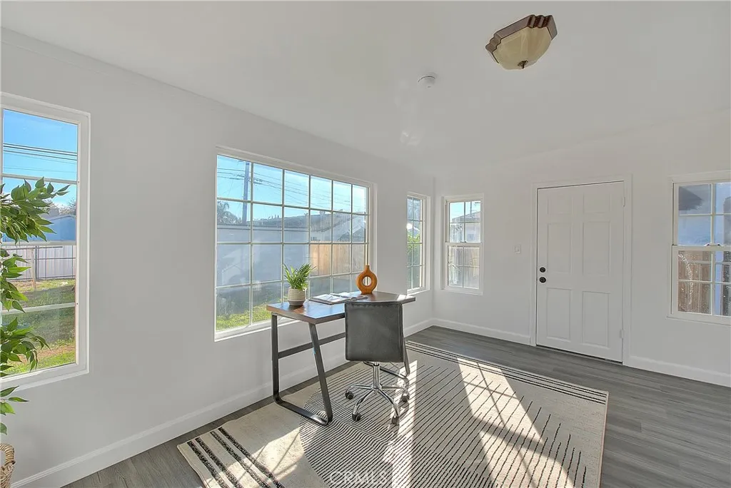 Welcome to your ideal starter dream Home! nestled in a quiet neighborhood in the vibrant city of Los Angeles . This single story home boasts 3 bedrooms and 1 bath with many endless possibilities; large Lot size with 2 detached garage which can be converted to ADU and junior ADU- Alley access advantage. Home comes with a good layout, den overlooking the living room with nice color paint to contrast with the natural beauty of this rare gem. Kitchen has large storage space. It is a must see to appreciate the wonderful characters of this beautiful home.