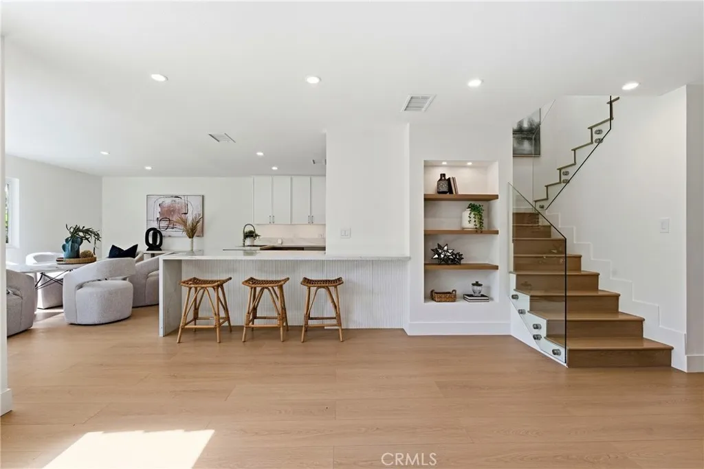 Luxury Fully Renovated Modern Residence | Designer Finishes | Smart Home Upgrades Completely reimagined and fully renovated, this stunning home offers modern design, high-end finishes, and a bright open-concept layout perfect for todays lifestyle. The redesigned floor plan features an expanded foyer with a new 42-inch front door, new laminate flooring throughout, fresh interior paint, and recessed lighting that fills the home with natural warmth. The designer kitchen is the centerpiece of the home, showcasing brand-new custom cabinetry, elegant quartz countertops, a statement waterfall island, integrated wine fridge, high-performance insert range hood, and Samsung Smart appliances including a 5-burner gas range and dishwasher. The kitchen flows seamlessly into the living area featuring built-in display shelving and a beautifully remodeled fireplace, ideal for entertaining. A modern glass staircase railing adds a striking architectural touch, while the upstairs features fully renovated bathrooms with new windows, custom glass shower doors, LED anti-fog mirrors, and designer finishes. The primary suite is enhanced with a new sliding door for added light and comfort. Additional upgrades include new interior doors, glass closet doors, brand-new high-efficiency AC, and a smart garage door opener. Outside, enjoy enhanced curb appeal with fresh exterior paint, modern lighting, a tiled entry pathway, contemporary aluminum slatted gate, updated balcony rails, refreshed landscaping with smart irrigation, and professionally power-washed roof, driveway, and backyard. The garage has als