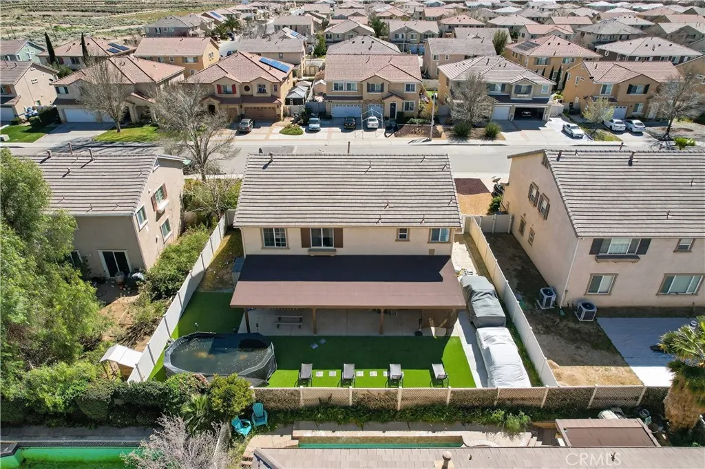 This spacious 4-bedroom, 3-bathroom home + a loft + bonus office offers 3,211 square feet of well-designed living space, ideal for comfortable everyday living and effortless entertaining. With generous living areas, abundant natural light, and a versatile floor plan, there is plenty of room for everyone to spread out and feel at home. The kitchen flows seamlessly into the main gathering spaces, creating a welcoming environment for hosting family and friends. Both upstairs and downstairs living areas provide flexibility for a home office, guest quarters, or multi-generational living. The expansive layout extends outdoors, offering excellent potential to create your ideal backyard retreat. The property also features a number of thoughtful upgrades that enhance both functionality and outdoor living. RV access has been completed with durable 3,000 PSI cement, complemented by a cement front walkway that adds to the homes curb appeal. The backyard includes low-maintenance patio turf, an above-ground pool with an upgraded filtration system, and a rear patio deck equipped with recessed dimming lighting and patio fans, creating a comfortable space for relaxing or entertaining. Inside, the home includes a whole-house water filtration system along with an alkaline water faucet for added convenience. The kitchen has been updated with new appliances, including a stove, oven, dishwasher, and sink. Additional improvements include dusk-to-dawn outdoor garage lighting, a new outdoor vinyl fence, and updated driveway doors that provide added privacy and security. With its impressive size, ve