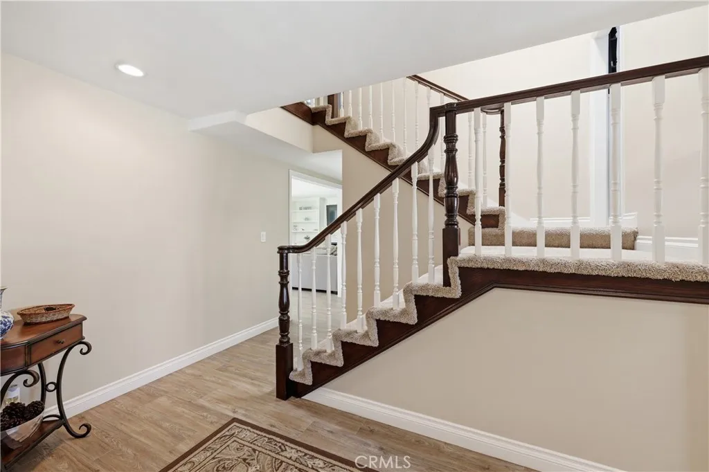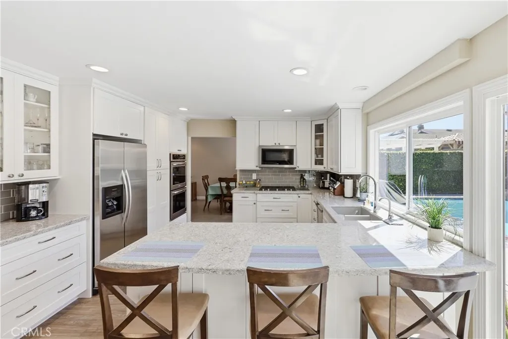 Beautiful two-story home offering 4 bedrooms, 3 bathrooms, and a spacious, well-designed floorplan. The remodeled kitchen features quartz countertops, stainless steel appliances, abundant cabinetry, and a large center island with seating, all opening to the main living areas and overlooking the backyard. Multiple living spaces provide flexibility for everyday living and entertaining, including a welcoming living room with fireplace, a separate family room with a second fireplace, and a formal dining room perfect for gatherings. Wood-look tile flooring runs throughout the main living areas, adding warmth and durability. A main level bedroom and bathroom. Upstairs youll find a generous bonus room ideal for a media room, playroom, home office, or additional living space. The primary suite offers a relaxing retreat with its own private bathroom, while three additional bedrooms provide plenty of space for family or guests. Step outside to a private backyard oasis featuring a sparkling pool and spa, perfect for enjoying sunny days and entertaining. With its thoughtful layout, stylish kitchen updates, and inviting indoor-outdoor living, this home offers comfort, functionality, and a great space to call home. Los Alamitos school district! Close to shopping and freeways!