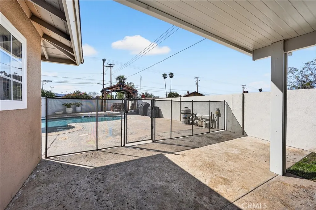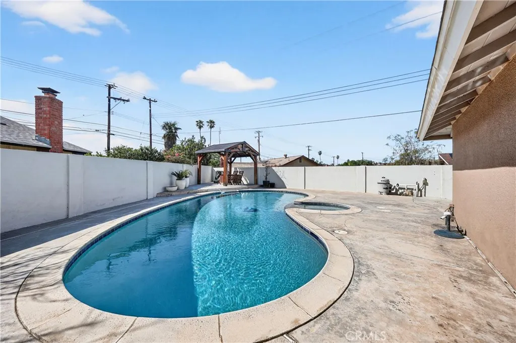 Stunning 4 bedroom, 2 bath pool home in Riverside offering the perfect blend of modern upgrades, smart home features, and a backyard built for entertaining. From the moment you enter, youll notice the stylish upgrades throughout including luxury vinyl flooring, upgraded baseboards, recessed lighting, and elegant French doors that fill the home with natural light and create a warm, inviting atmosphere. The beautifully updated kitchen features modern cabinetry, sleek quartz countertops, and a matching quartz backsplash, making it the perfect space for cooking, entertaining, and gathering with family and friends. Both bathrooms have been tastefully updated, including improvements to the primary bathroom, while the hallway bathroom includes a reglazed tub and updated vanity for a fresh, modern look. Additional upgrades such as dual pane windows, smart thermostat, and upgraded AC system add comfort and energy efficiency. Step outside to your private resort-style backyard where you can relax or entertain year-round. Enjoy the sparkling pool with Pebble Tec finish and upgraded pool filter, surrounded by plenty of space to host gatherings. The backyard also features an aluminum patio cover, gazebo, and stucco privacy walls, creating the perfect outdoor retreat. A removable pool safety fence adds peace of mind for families. Additional improvements include a smart irrigation system and upgraded water heater, making this home both functional and move-in ready. This is a fantastic opportunity for buyers looking for a turn-key home with modern upgrades and a resort-style backyard.
