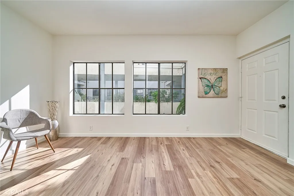 Beautifully remodeled 2-bedroom, 2-bath residence offering the ideal beach lifestyle. This bright and inviting home features a well-designed layout with spacious living areas, abundant natural light, and a comfortable open-concept feel. The spacious living room flows into the upgraded kitchen, featuring new quartz countertops, stainless steel appliances, and a new sink and faucet. Both bathrooms have been tastefully remodeled, and the home includes fresh interior paint and natural wood-design laminate flooring throughout. The hallway laundry area conveniently includes a newer stackable washer and dryer, neatly tucked away. Down the hall, the spacious en-suite primary bedroom offers dual wall closets, vanity cabinets, and a sliding glass door that opens to a private balcony. The second bedroom is equally spacious, featuring similar closet space and a vanity area with convenient access to the hallway bathroom. The unit includes 2 dedicated parking spaces with overhead storage in the subterranean garage. The secured complex offers modern cell-app and FOB access for entry to the parking areas, mailroom, and building. Residents enjoy low HOA dues and amenities including a community recreation room, a well-equipped gym, bike storage, and an open green outdoor space for entertaining. Ideally located just down the street from a community center and park, and only minutes from freeway access, downtown, and the beach. Enjoy nearby coastal amenities including restaurants, shops, bike trails, picnic areas, kiting, a skate park, and an on-sand restaurant.