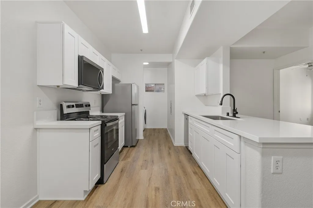 VA & FHA APPROVED! Welcome to this brilliantly updated lower-level end-unit condo that offers the perfect blend of comfort, convenience, and true turnkey living. Fresh paint, new flooring, and brand-new cabinetry create a bright, modern atmosphere throughout. The kitchen shines with new stainless - steel appliancesincluding oven, dishwasher, microwave, and fridge - plus quartz countertops. An in-unit laundry room with washer adds everyday ease so you can move right in with confidence. Enjoy two generously sized bedrooms, each featuring a large walk-in closet, along with two full bathrooms that provide comfort and privacy. The open concept layout enhances the homes inviting flow, ideal for both daily living and entertaining. Parking is effortless with your own dedicated carport and a private One Car Garageperfect for two personal vehicles. The location is unbeatable: the first building on the right as you enter the community, and unit 2412 is in the back of the building, plus just minutes from freeway access and a short drive to the vibrant shopping, dining, and entertainment and Wine Country of Murrieta and Temecula. The Villas at Madison Park is a gated community offering exceptional amenities, including a clubhouse, sparkling pool, spa, sauna, fully equipped gym, racquetball court, parks, assigned covered parking, and ample guest parking. The HOA is low and covers, water and sewer! We welcome your consideration of ownership, to own this newly renovated condo, with low taxes, in a highly desirable gated neighborhood, and remember your home happiness is just a call away!