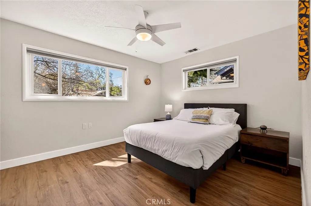 A rare Barber beauty renovated in 2022! This single family 3/2 home offers a rare and coveted floor plan that is perfect for those seeking to live in half the house while renting out the other half for passive income, AirBNB buyers (seller's previous annual income was $24,000 from the one bedroom unit alone!), or folks seeking a multi generational living arrangement! Located in the highly sought after Barber Neighborhood with a drought tolerant fully fenced front yard and just minutes to Downtown and CSU, Chico, this home's floor plan is one of a kind! The front portion of the house offers 2 bed/1 bath, a generous living area, full kitchen, full bath, an individual stackable washer and dryer, central heating and air conditioning, dual pane windows throughout and laminate flooring throughout. The back end of the home can be accessed through a conjoining door that can be locked off to separate both wings of the house for independent living. The back "unit" offers a roomy 1 bed/1 bath with an open concept designer kitchen that is just 3 years old and is open to the living area. This space is light, bright and updated throughout with a stainless steel dishwasher, oven, full fridge, vented exhaust fan and open concept shelving. A sliding glass door off the living area of the back unit leads to a spacious and inviting deck that overlooks a deep lot with plenty of room for an ADU! In fact, prior permits were completed and a survey are on file to expand this property further! The 1/1 back unit can be accessed through the main portion of the house OR through a designated gated path