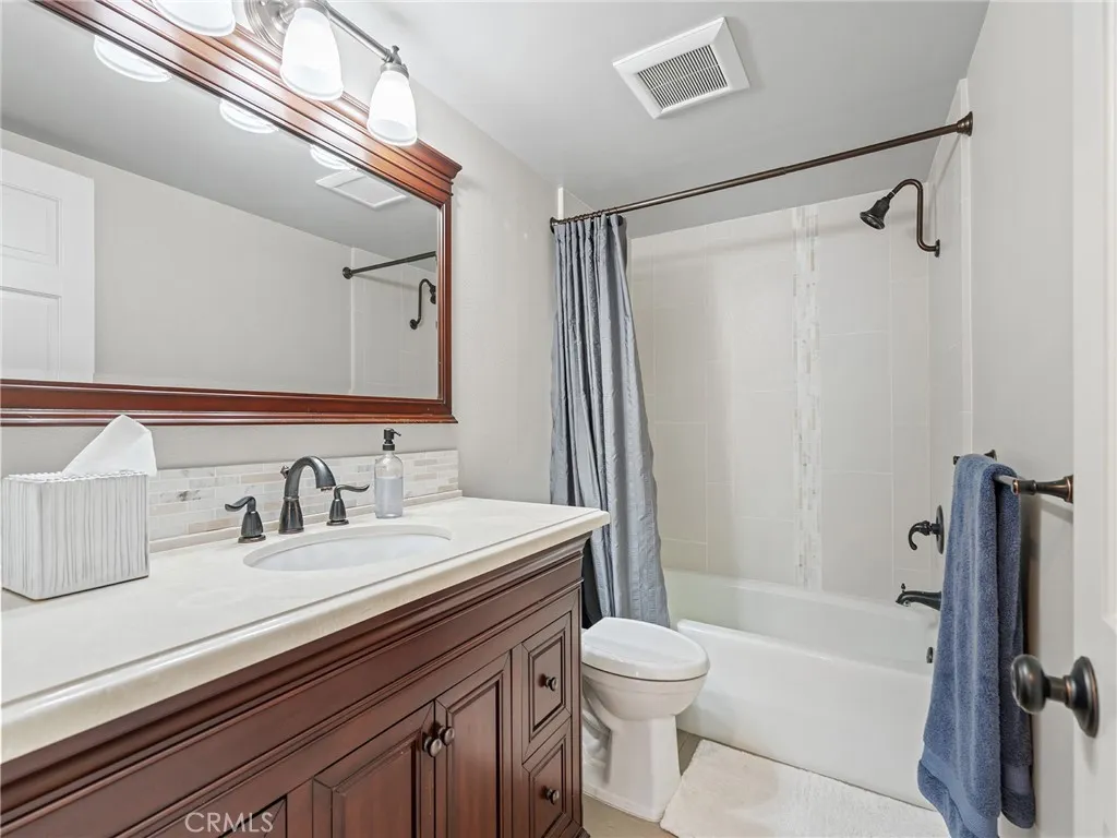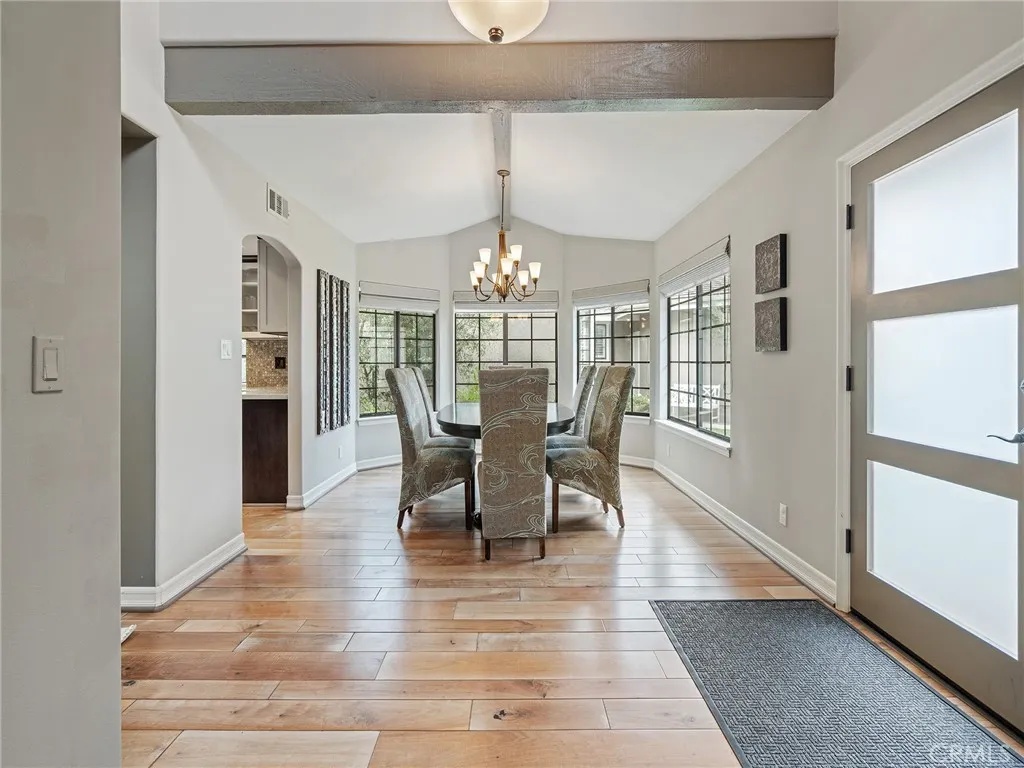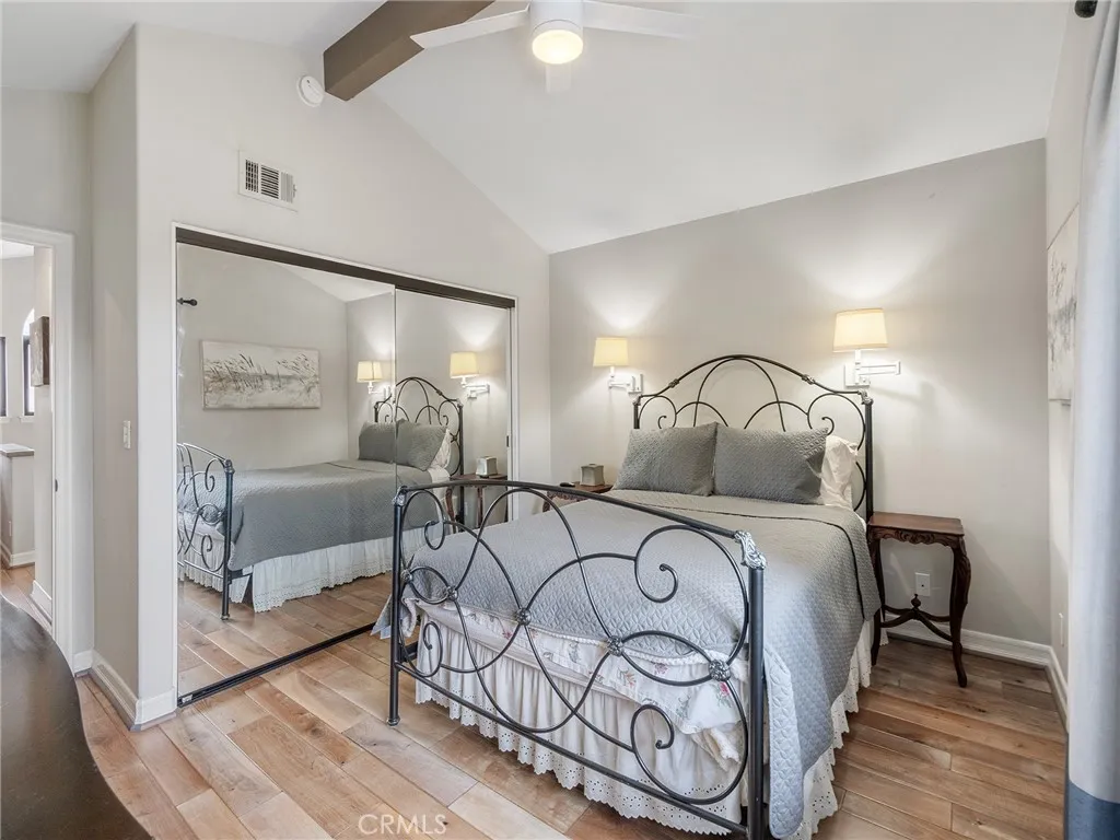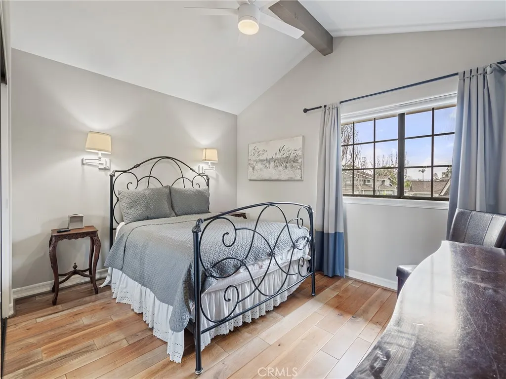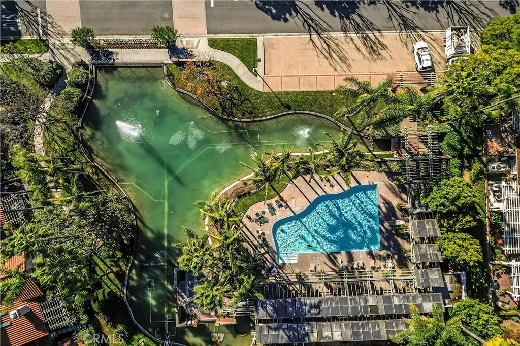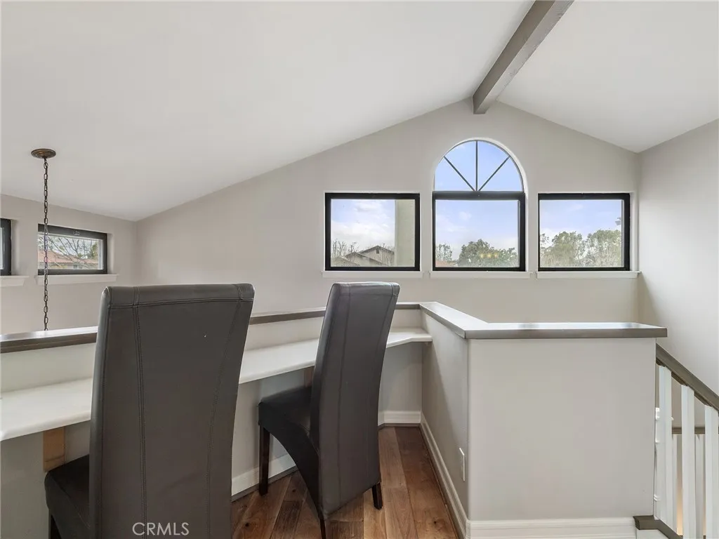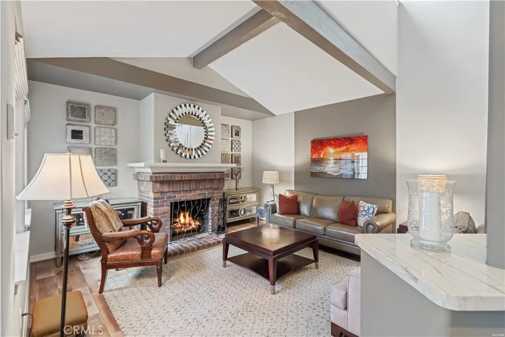 Ideally situated within the community of the Manhattan Village, this property is tucked away on a cul-de-sac with privacy. This highly sought after plan 8 townhome features a main floor primary suite with a walk-in closet, vaulted ceilings, and French doors leading out to the patio. The updated kitchen is equipped with a built-in 6-burner gas range, wine fridge, and a large breakfast bar open to the family room. A built-in desk and additional cabinet space complement the kitchen in modern design. A moody living room with fireplace, a large sunlit dining room and guest bathroom complete the first floor. The second level features two bedrooms and a bathroom plus a loft with a built-in workspace overlooking the first floor with second level windows that have views of the lush neighborhood. With only one shared wall, there is an abundance of windows surrounded with greenery and there is newly installed central air conditioning. The two-car garage is has an epoxy finish with washer and dryer included. Convenient guest parking is abundant on Nantucket and it has an easy walking path to the community pool, numerous spas, and well-lit and paved sidewalks. The 24 hour security includes the front gate guard, two additional residents only gates (including one at the Village mall entrance) and an overnight roaming guard.