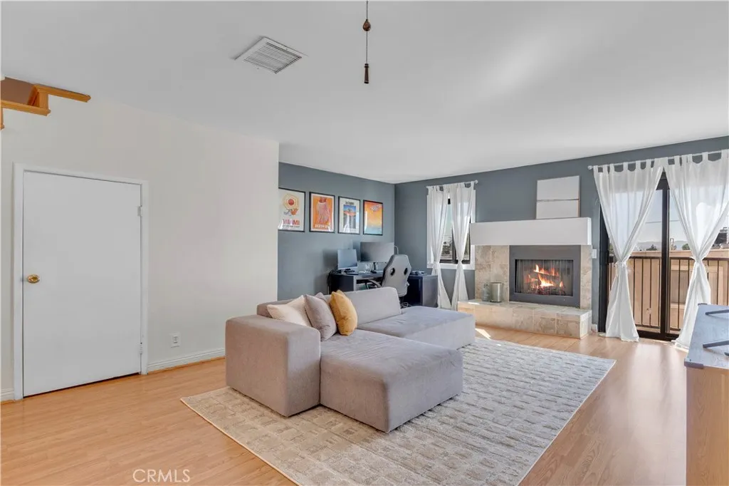 Charming townhome in an excellent Canoga Park location! Corner unit with welcoming entry features 2 bedrooms, 2.5 bathrooms and 1,114 square feet of living space. Open concept floor plan with tons of natural light creates a tranquil space to call home. First level features light and bright living room with laminate wood floors, a cozy gas fireplace with raised hearth, versatile corner nook thats ideal for a workspace, a spacious storage closet and powder room. Sun filled kitchen features quaint breakfast nook, tiled counter tops, stainless steel appliances, ample cabinet/drawer space and counter that overlooks the living area. Second level features a primary bedroom, ensuite second bedroom and laundry closet. Sumptuous primary suite with soothing tones, large closet and primary bathroom with updated vanity and walk-in tiled shower stall. Second ensuite bedroom features its own separate entrance and bathroom with updated vanity and tub. Additional features include dual pane windows installed in 2023, newer HVAC system installed in 2024, separate storage facility in the garage, and two car tandem parking. The Phoenix townhomes feature controlled access, a gated pool thats adjacent to the recreation room, cameras for added security and a newer roof that has been recently replaced. Great location with easy access to the freeways, the Canoga Bike Path, Orange Line, and just minutes away from Westfield Fashion Center.