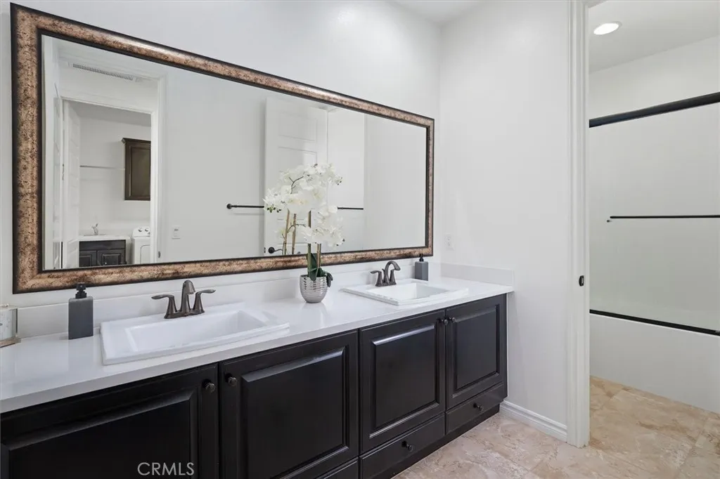 Welcome to this beautifully designed 6-bedroom, 4.5-bathroom home offering over 4,200 square feet of thoughtfully designed living space in the exclusive gated River Village community. With paid solar, flexible living areas, and inviting indoor-outdoor spaces, this home blends comfort, functionality, and entertainment. Inside, the open layout creates an easy flow between the living, dining, and kitchen areasperfect for everyday living and hosting gatherings. The kitchen features double ovens, huge walk-in pantry, large island with seating for six and plenty of cabinet space. Family room features a fireplace and beautiful views of the surrounding area. Two downstairs bedrooms provide ideal flexibility for guests, multi-generational living, or a private home office. Upstairs, a spacious loft has been transformed into the ultimate entertainment space, featuring a projection screen, built-in surround sound system, blackout blinds, making it perfect for movie nights, game days, or relaxing evenings at home. The primary suite features gorgeous views, a retreat, en-suite bathroom with two walk in closet, double sinks and a soaking tub. There are 3 more bedrooms upstairs, one with an attached bathroom, making it mini primary suite. Laundry room is conveniently located upstairs with sink and large walk-in linen closet. An enclosed sunroom offers additional year-round living space and a wonderful place to relax or entertain while enjoying views of the backyard. Step outside to your private backyard retreat featuring incredible views of Santa Clarita, a water feature with fountains and