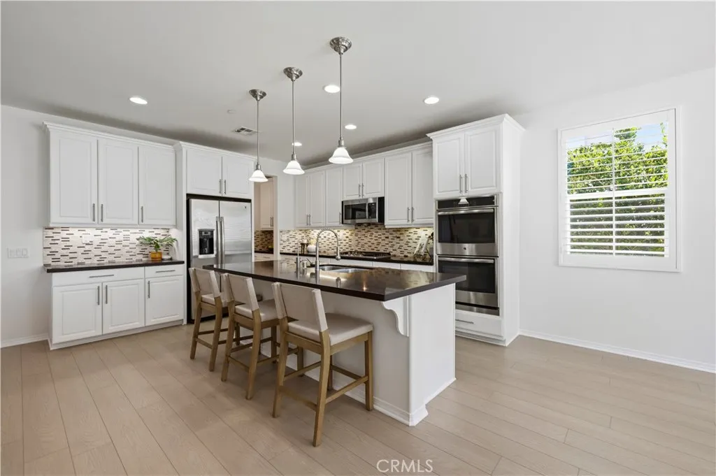 Experience the perfect blend of sustainability and style in this updated River Village residence. Boasting owned Tesla Solar and no Mello-Roos, this home offers a rare single-story living feel with an expansive, flexible layout. The interior shines with plenty of natural light, fresh paint, plantation shutters, and new luxury flooring. The heart of the home is an open-concept chefs kitchen featuring an oversized center island flowing seamlessly into a family room with cozy fireplace and breakfast nook leading outside. The thoughtful floor plan places the primary suite and two additional bedrooms on the main level, creating an easy, accessible flow. The upstairs serves as a versatile retreat with an additional bedroom, full bathroom, large loft and bonus roomoffer the ultimate setup for a home office, media room, or guest wing. Outside, the private backyard is ready for weekend gatherings with its built-in BBQ and shaded patio. Located in the highly desirable River Village community, which offers a beautiful pool, spa, clubhouse, and a large park. Conveniently situated near top-rated schools, shopping, dining and with easy access to both the 5 and 14 freeways. Dont miss this fantastic opportunity!