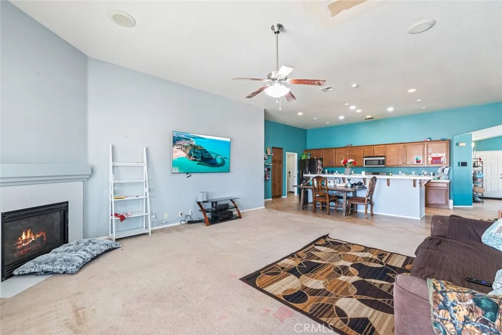 The ideal single story with an expansive open floor plan! A Fantastic opportunity for the growing family or a family looking to upgrade! Featuring 4 generous sized bedrooms and 3 full baths. A unique part of this home is that it has a Full Size Primary bedroom/bath, and also a mother in law/guest bedroom complete with a full bathroom as well. The living room and family room truly give ideal living spacing. The kitchen has ample counter space and cabinets and it opens up to the family room and gives a very grand appearance, complete with a fireplace and built in ceiling speakers. The backyard holds a blank canvas for all your future enhancements and ideas! The starter piece in the back has a deluxe awning complete with a concrete slab finish. The 3 cars garage gives room for parking and storage! Come and see all this home has to offer!!